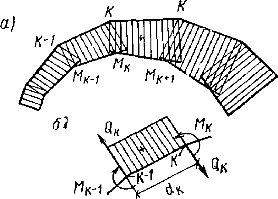 hб = 130 см (рис. 8.3). Половина поперечного сечения разбита горизонтальными плоскостями на 16 элементарных участков (рис. 8.3,