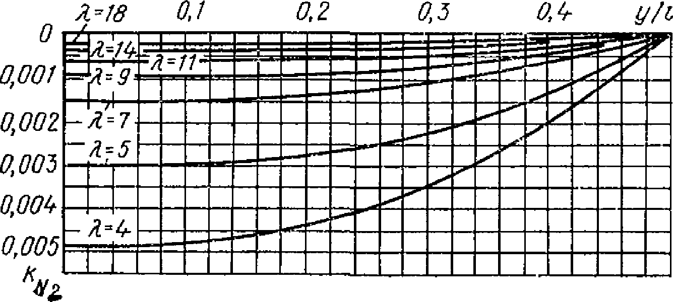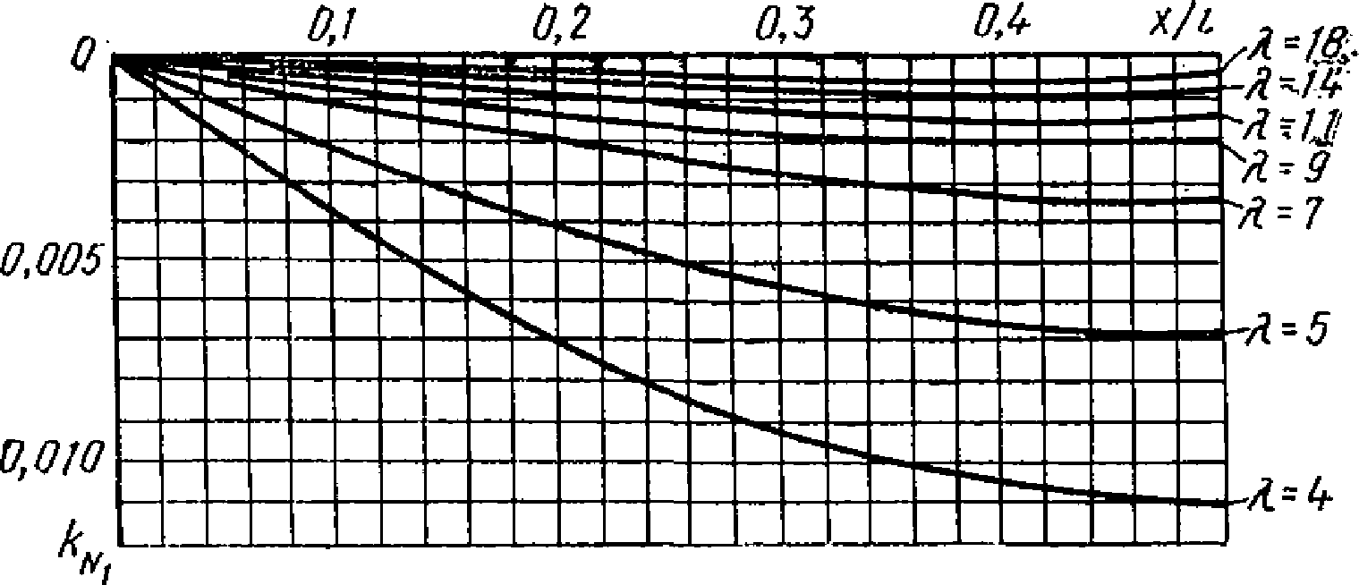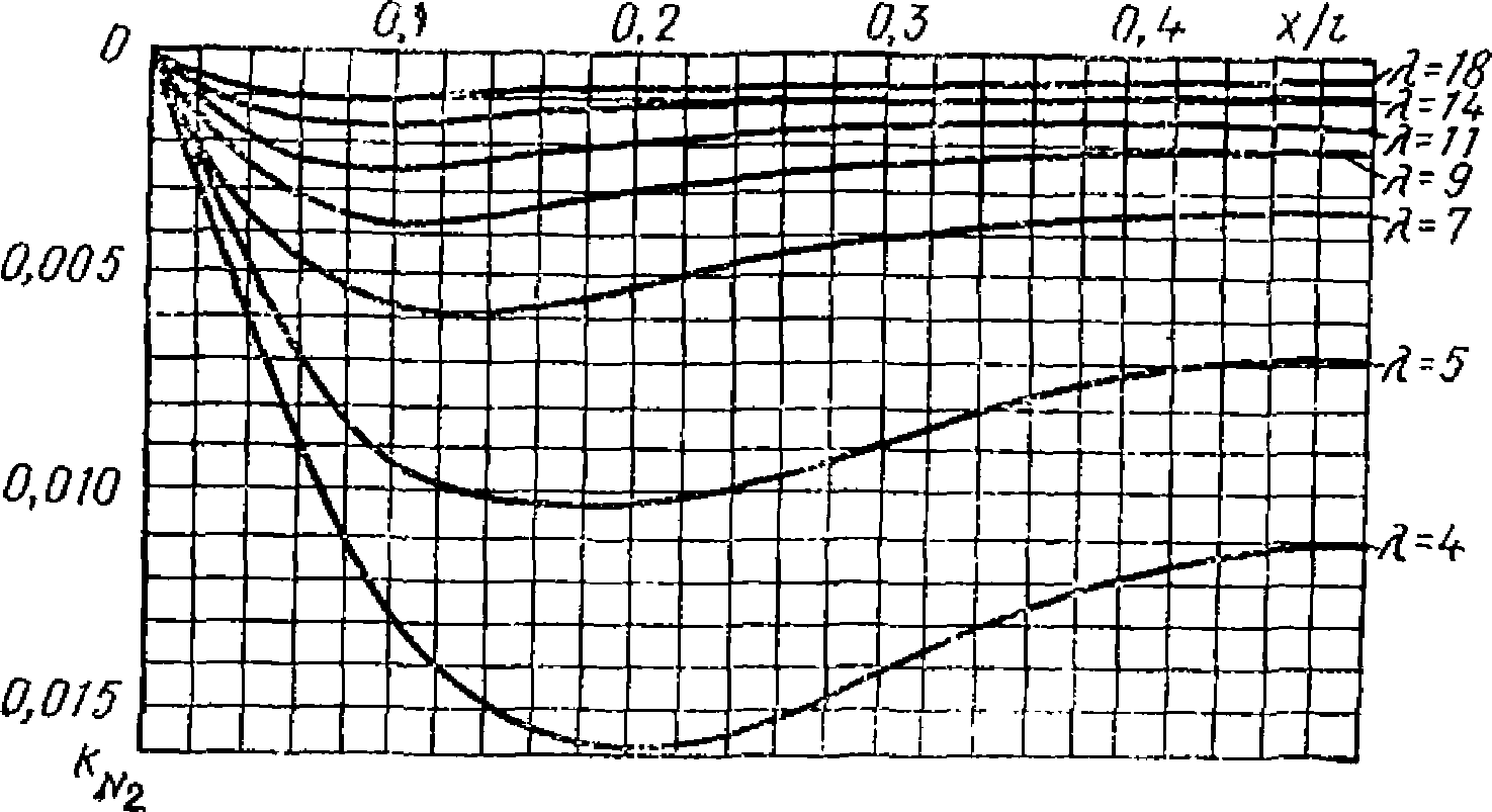 формуле (10.9) определяем наиболее нагруженные волны покрытия из килевых панелей-оболочек (