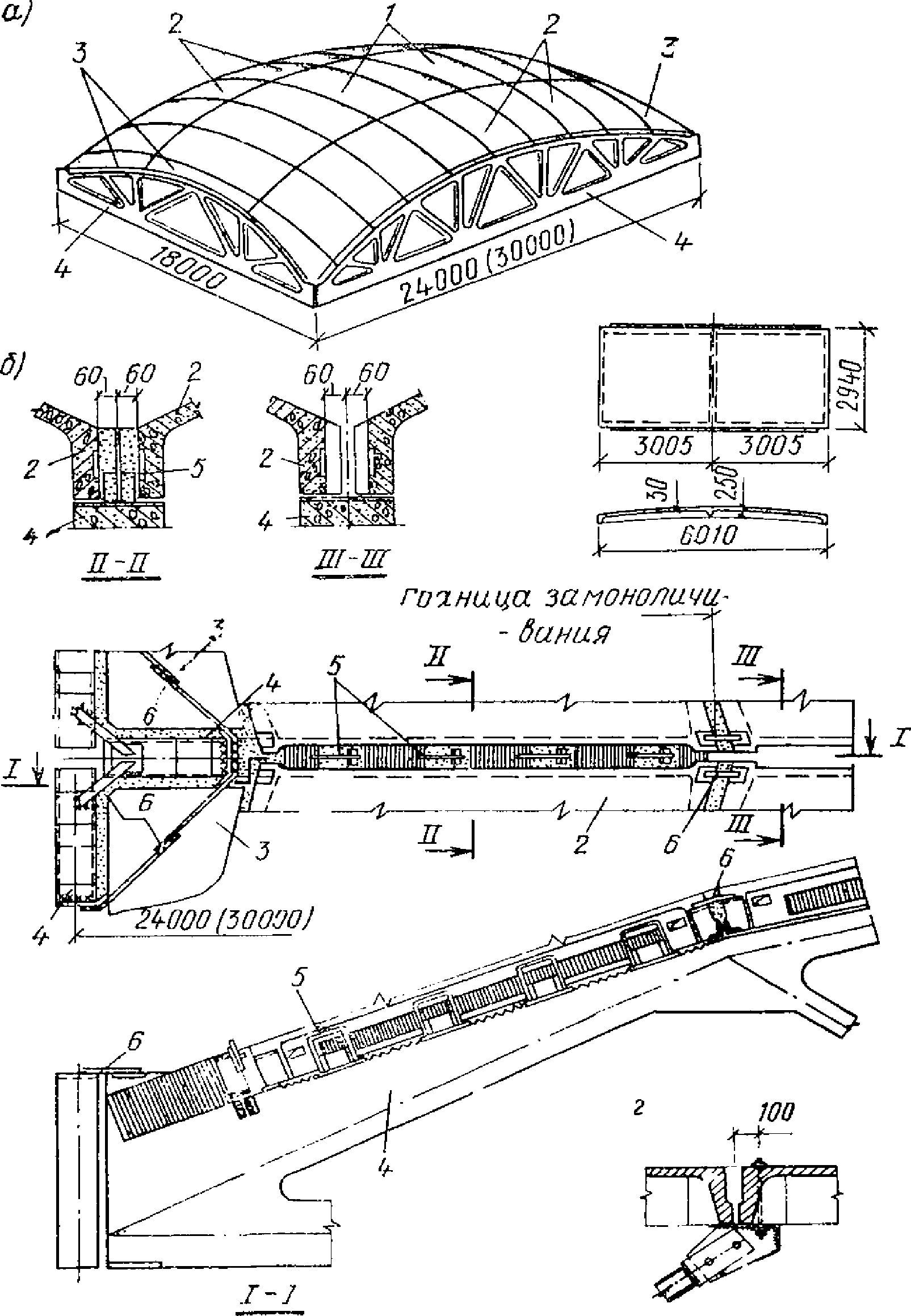 4 - свод-оболочка; 5 - длинные цилиндрические оболочки;