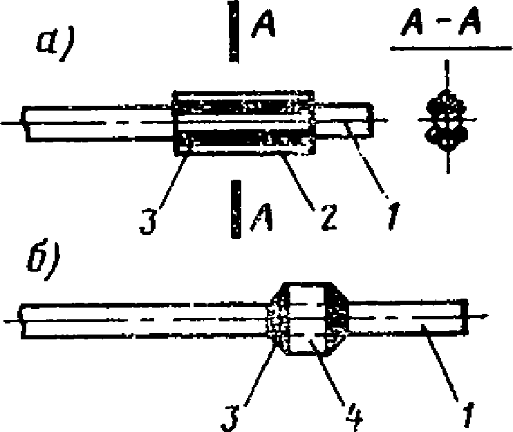 поперечным сечением; 2 - то же, с трапециевидным; 3 - то же,