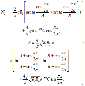 Nx, N1 - | продольная сила, действующая в направлении оси x, или меридиональная сила (для оболочек вращения); |