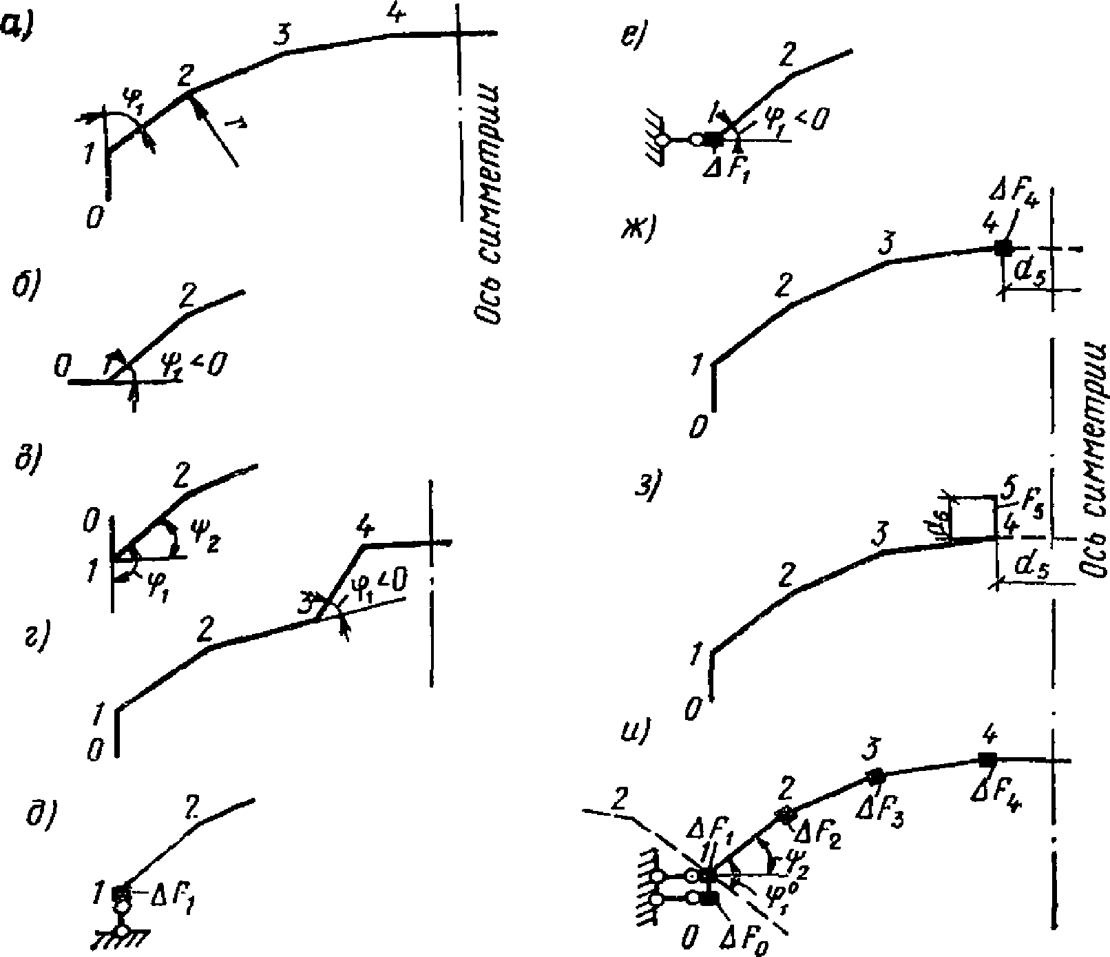 г - то же, отрицательной; д - оболочки с вертикальной осью