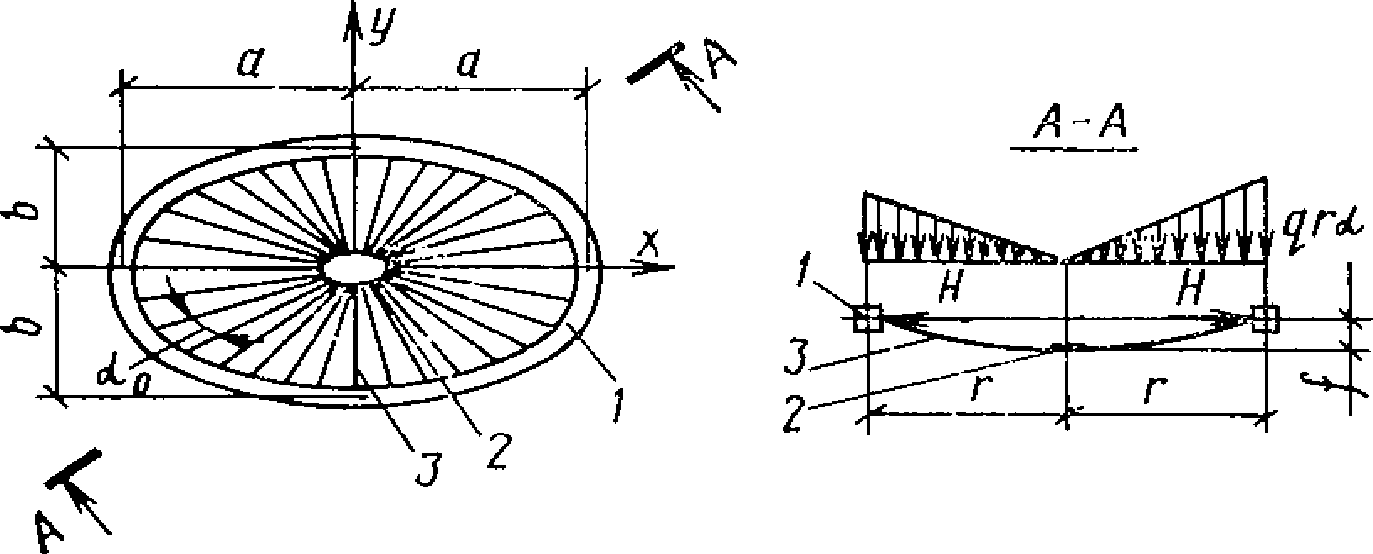 11 - гиперболические оболочки; 12 - покрытие с треугольным