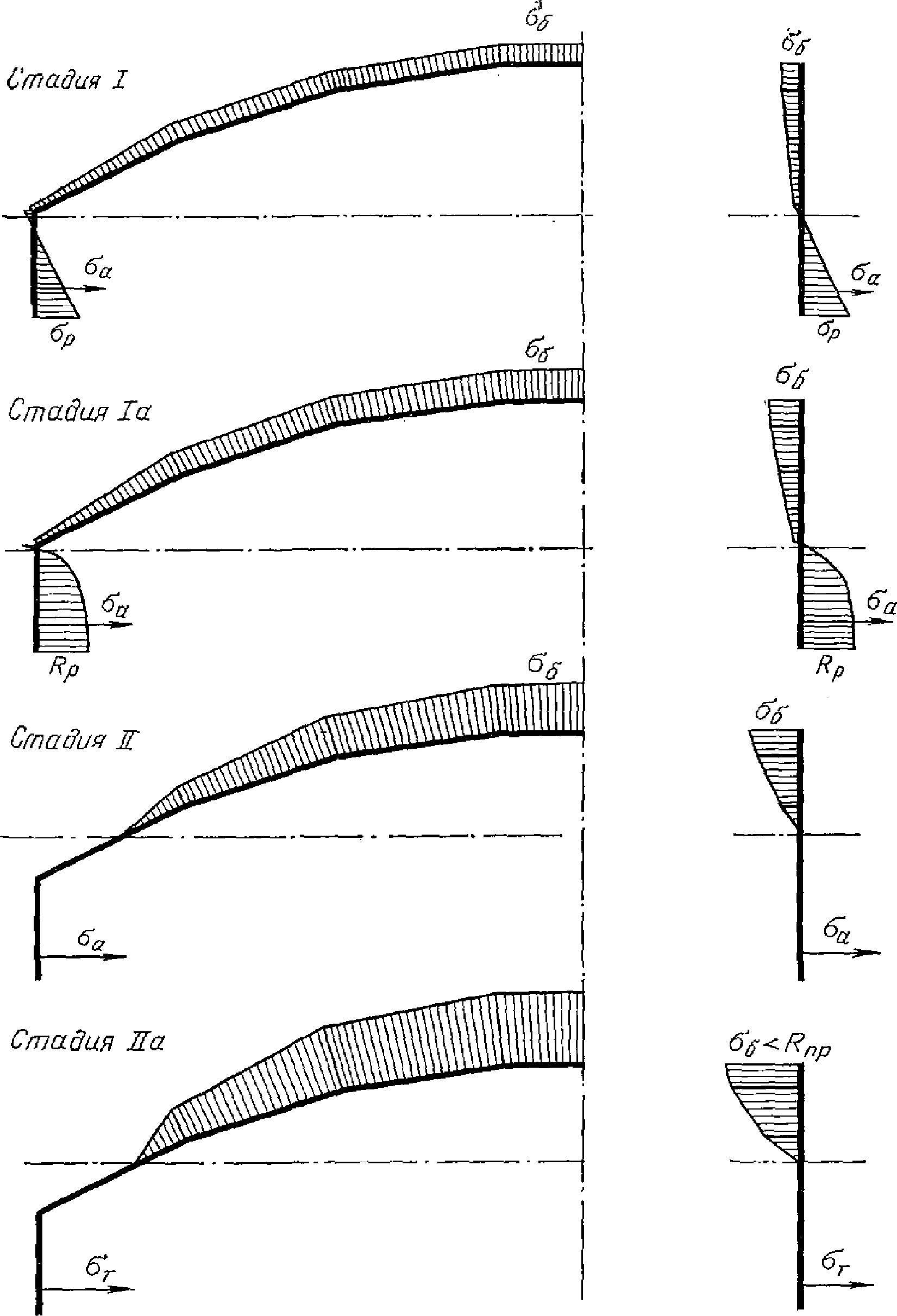 Rр, RрII - | расчетные сопротивления бетона осевому растяжению для предельных состояний первой и второй групп; |