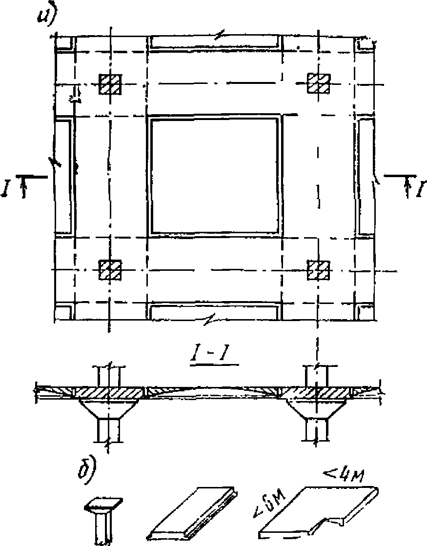 з) вспарушенные плиты, в том числе ступенчато-вспарушенные и шатровые панели;
