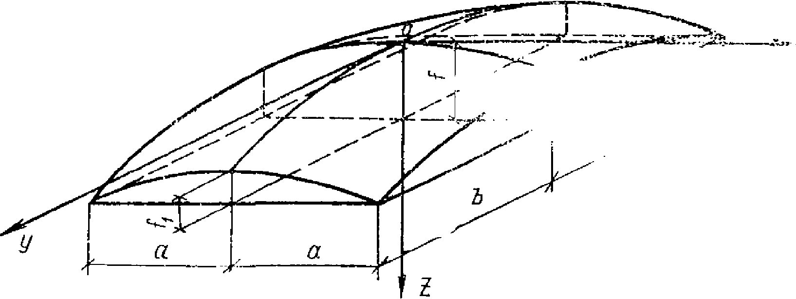<1> Под срединной поверхностью здесь и далее понимается геометрическое место точек в плите оболочки или складки, равноудаленных от ее нижней и верхней поверхностей. Тонкостенные конструкции покрытий и перекрытий, имеющих плиту поля постоянной толщины, допускается различать по очертанию ее верхней поверхности.