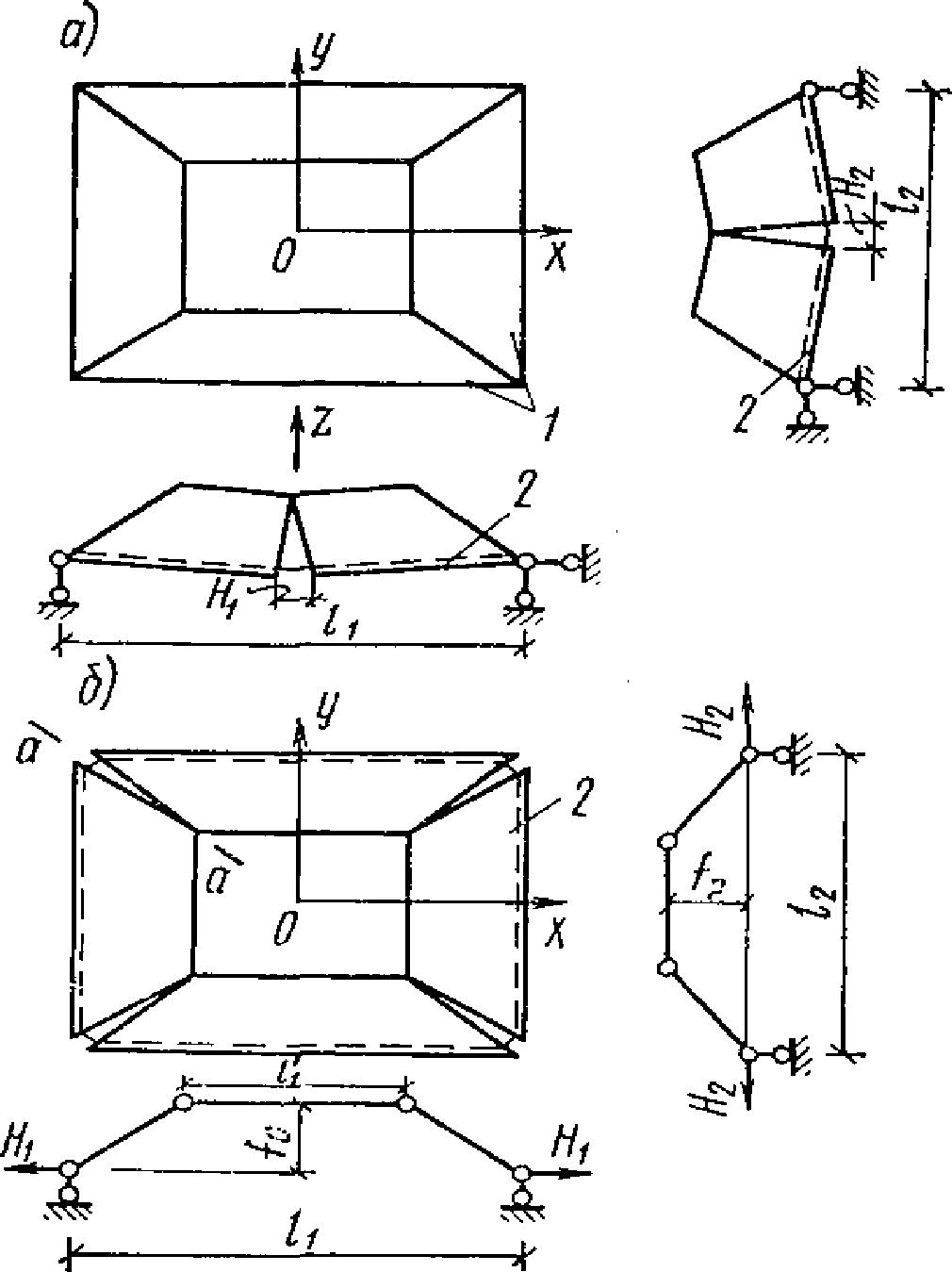 Рис. 1.1. Схемы тонкостенных пространственных конструкций