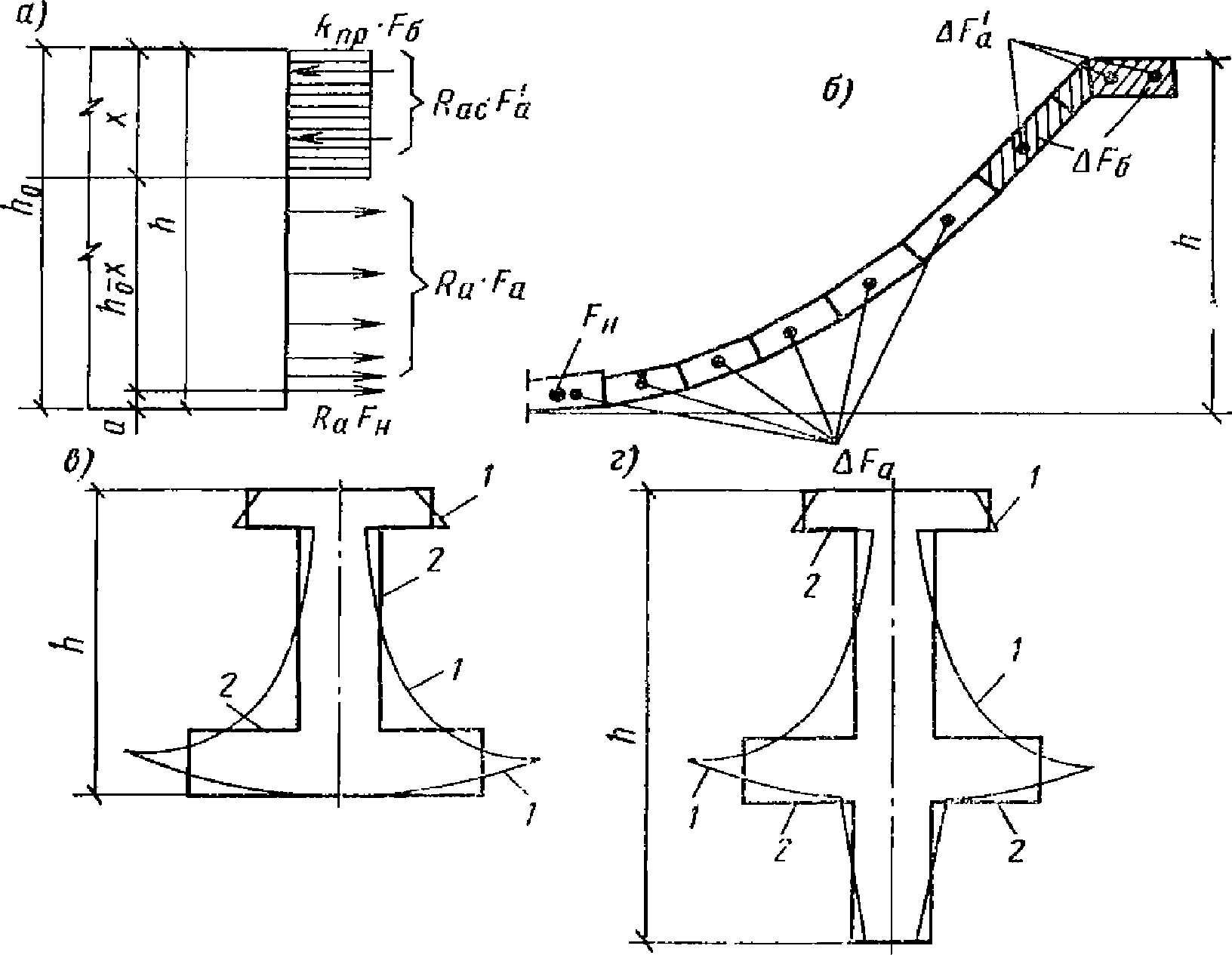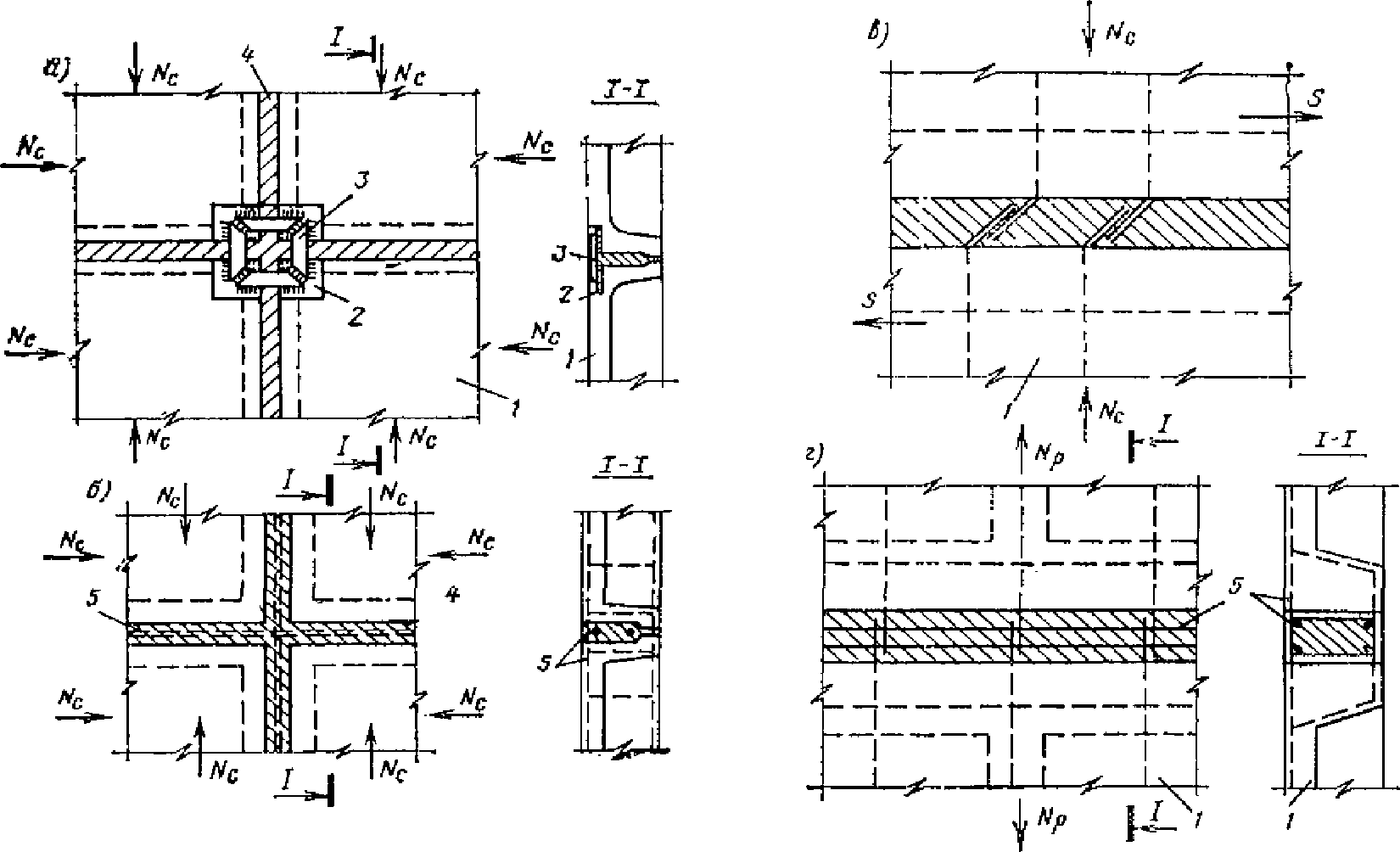 а - на действие усилий поперечного направления;