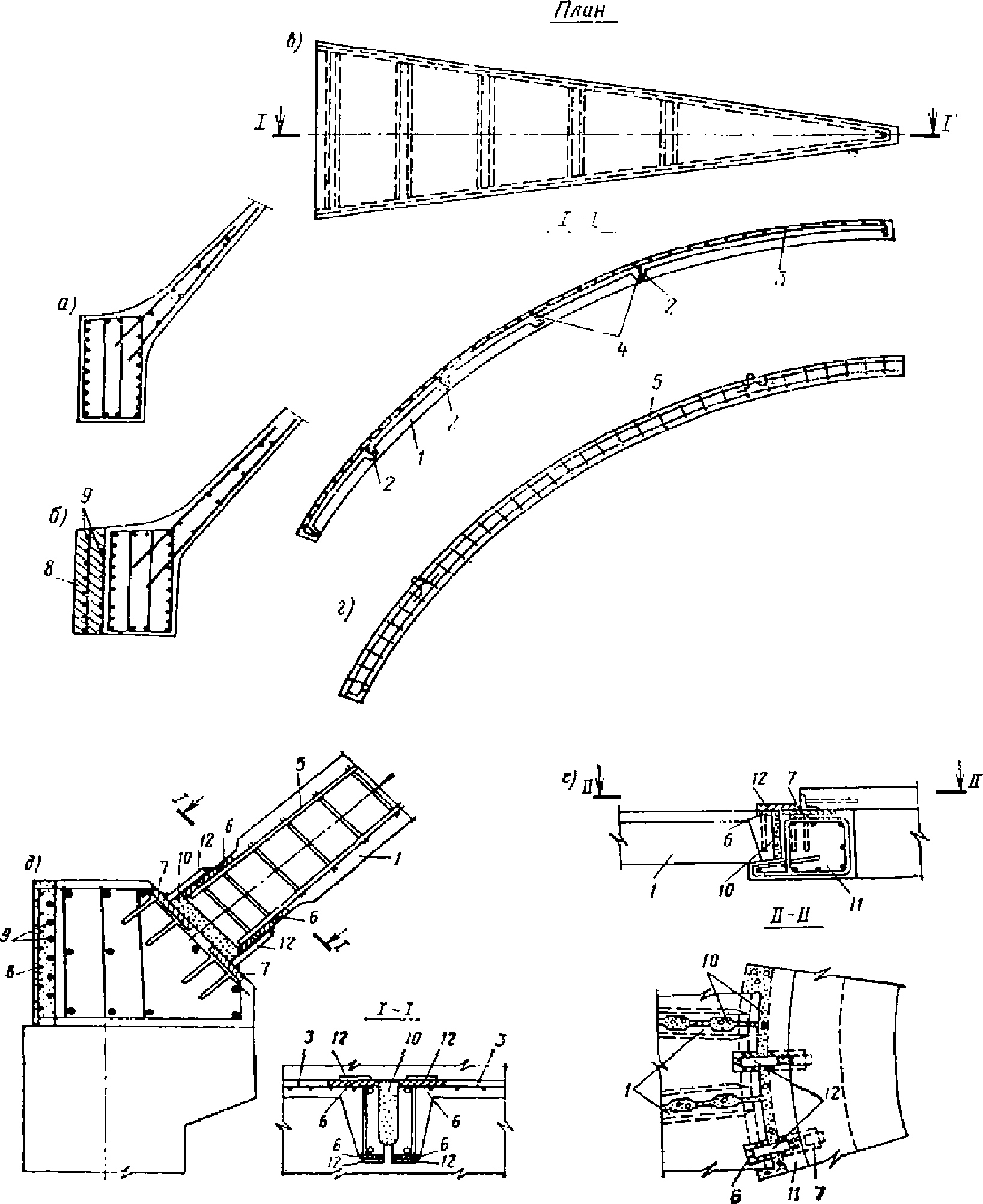 кривизны; 13 - то же, с полигональным планом; 14 - покрытие
