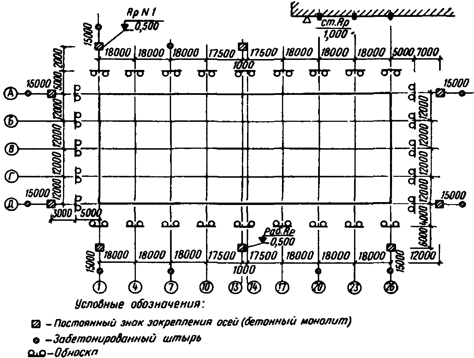 разбивки главных и основных осей зданий и инженерных сооружений;