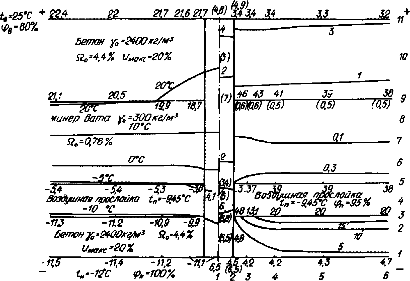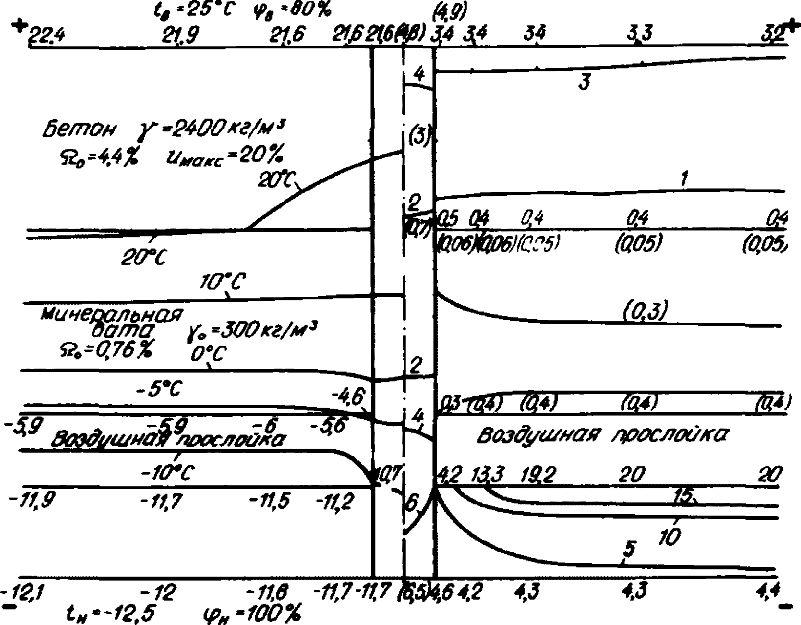 Влажностное состояние ограждения с вентилируемой воздушной прослойкой вычисляется с использованием соотношений, приведенных в