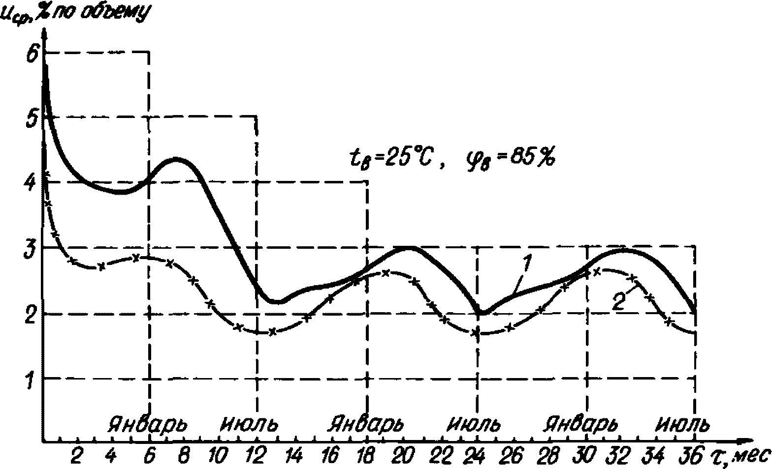 uв - количество влаги в материале в жидкой фазе, % по объему;