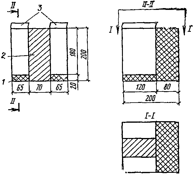 1 - деревянная прокладка; 2 - бетон; 3 - кирпич