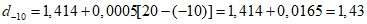 табл. 9 находим, что температурный коэффициент плотности при ее значении 1,414 составляет около 0,0005. Изменение плотности раствора с изменением температуры до -10 °C находим по формуле