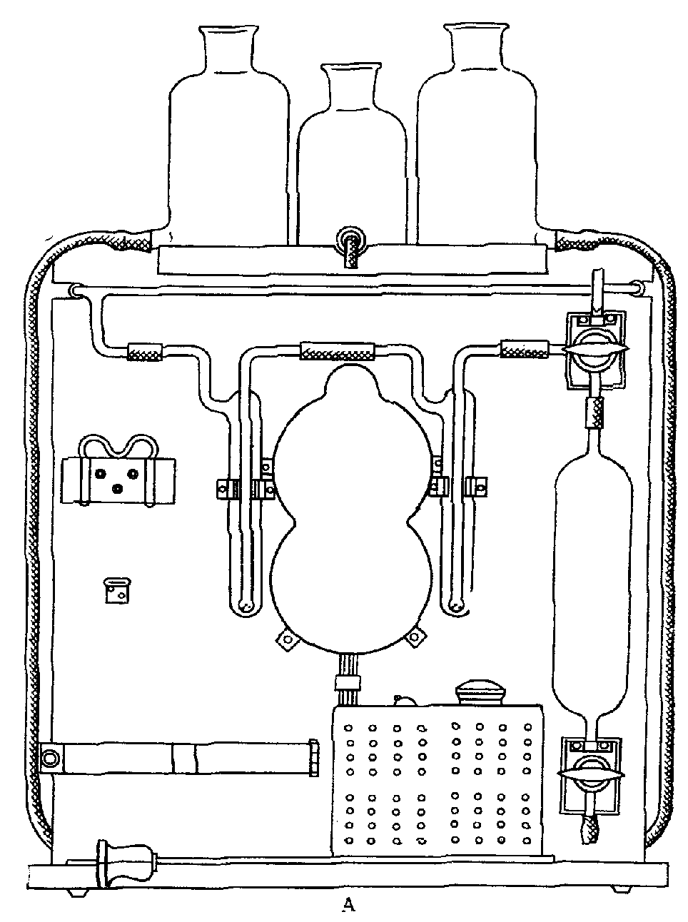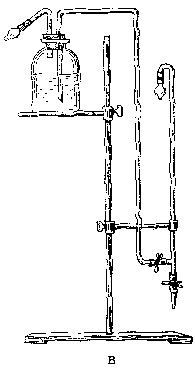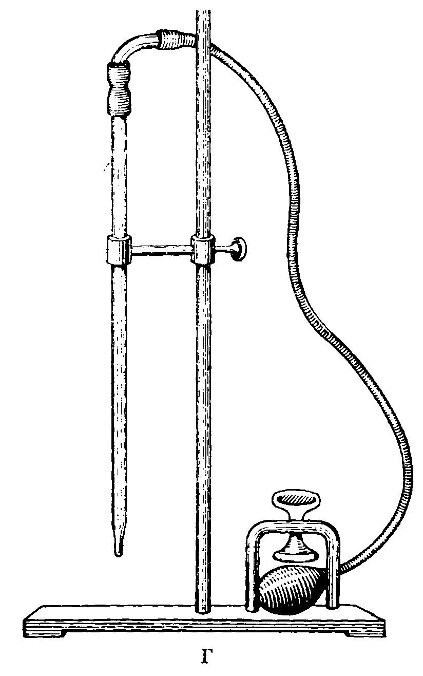 9. Включить аспиратор и, пользуясь дырчатой заслонкой, помещенной на противоположном конце, где находится патрон-насадка, отрегулировать протягивание воздуха по манометру.