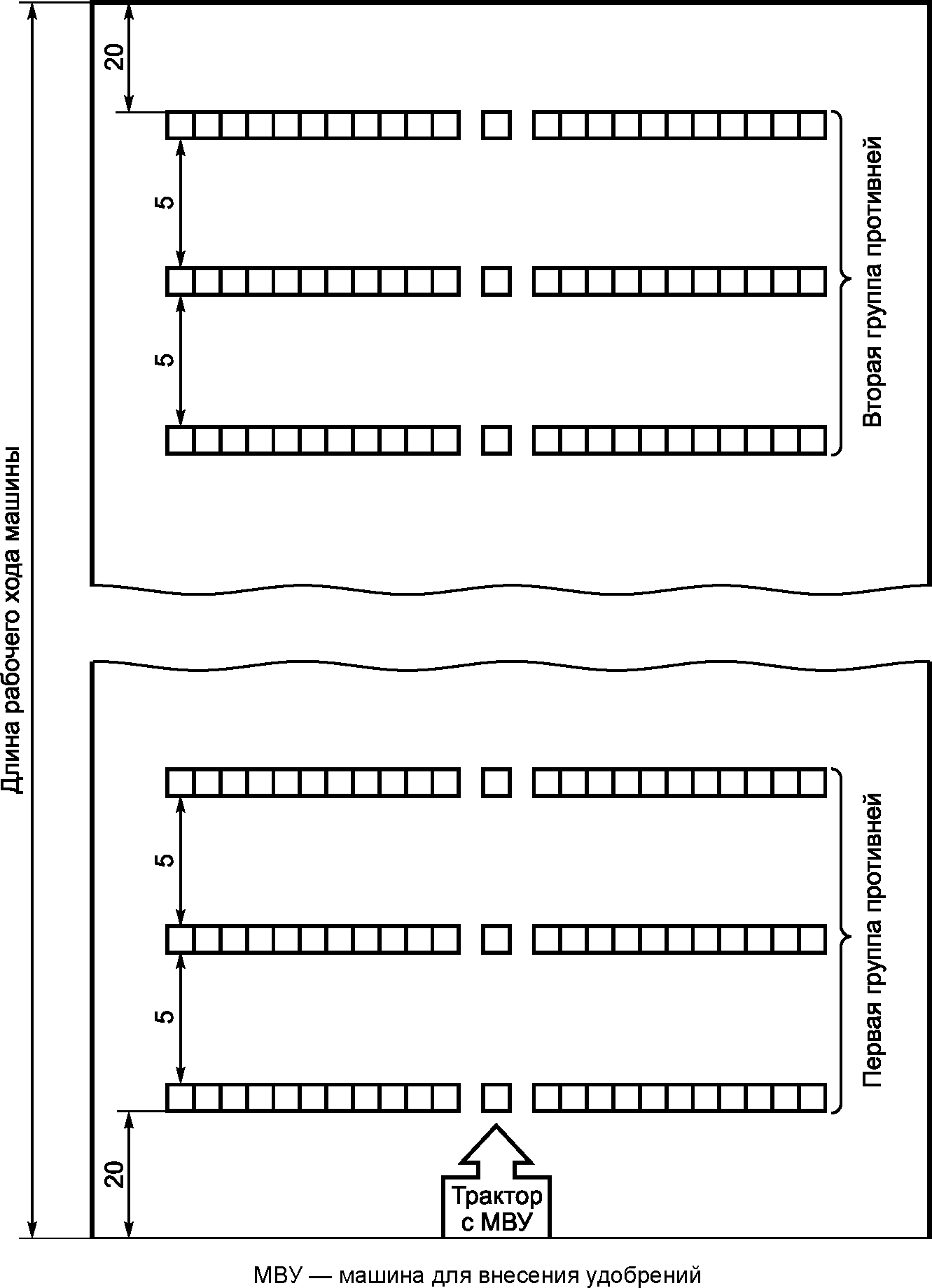 3.4 фактическая ширина внесения удобрений: Расстояние между следами соответствующих колес машины на смежных проходах.