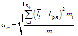 - стандартное отклонение средневзвешенного размера частиц, мм, вычисляемое по формуле