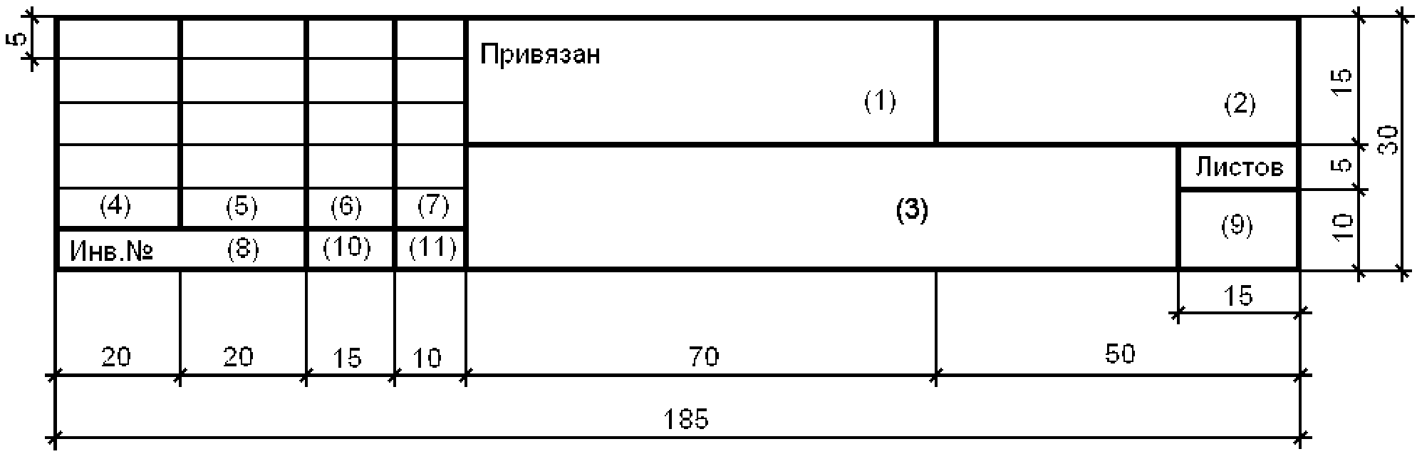 Примечание. Размеры титульного листа и обложки принимают в зависимости от формата тома, папки или альбома, к которым они выполняются.