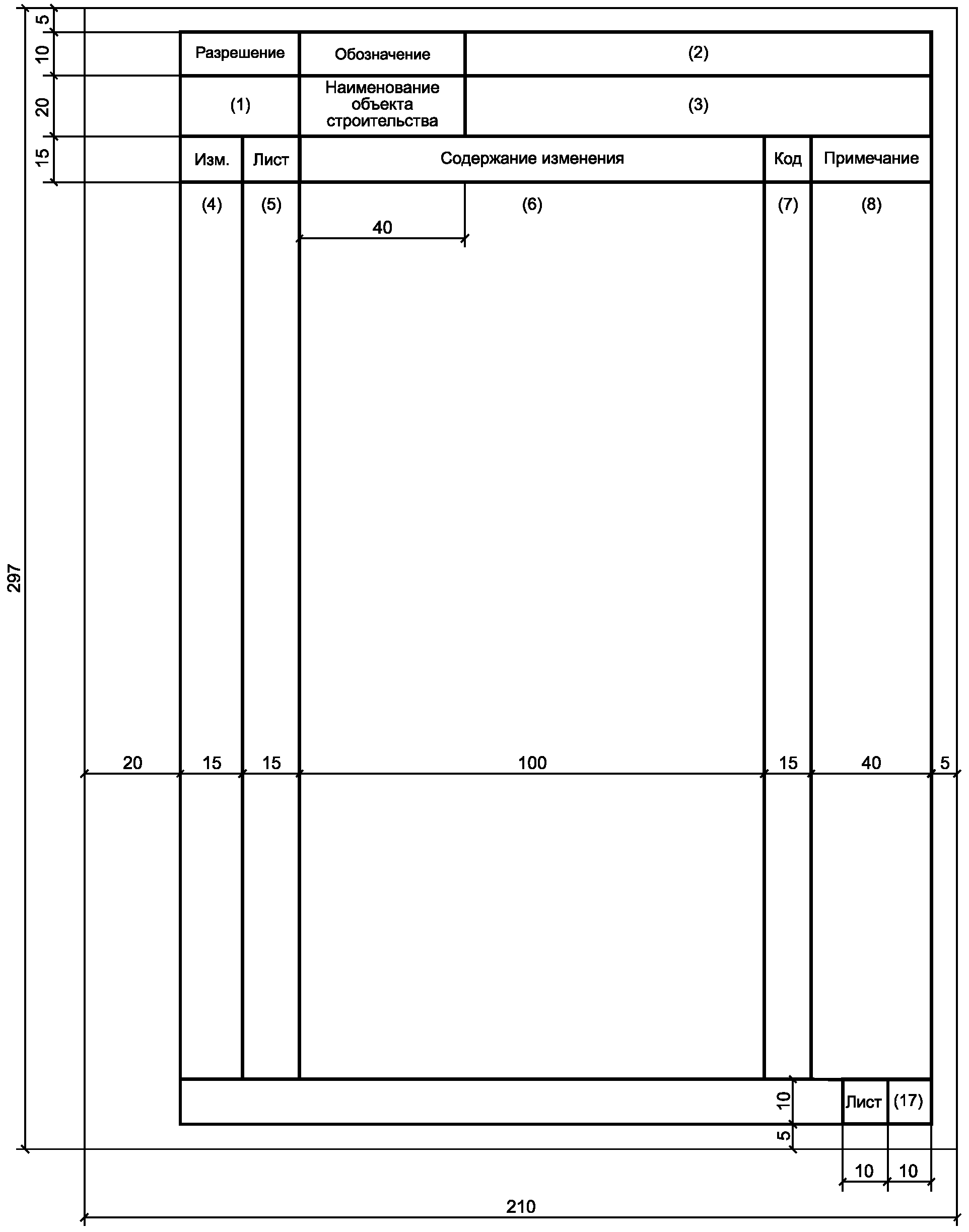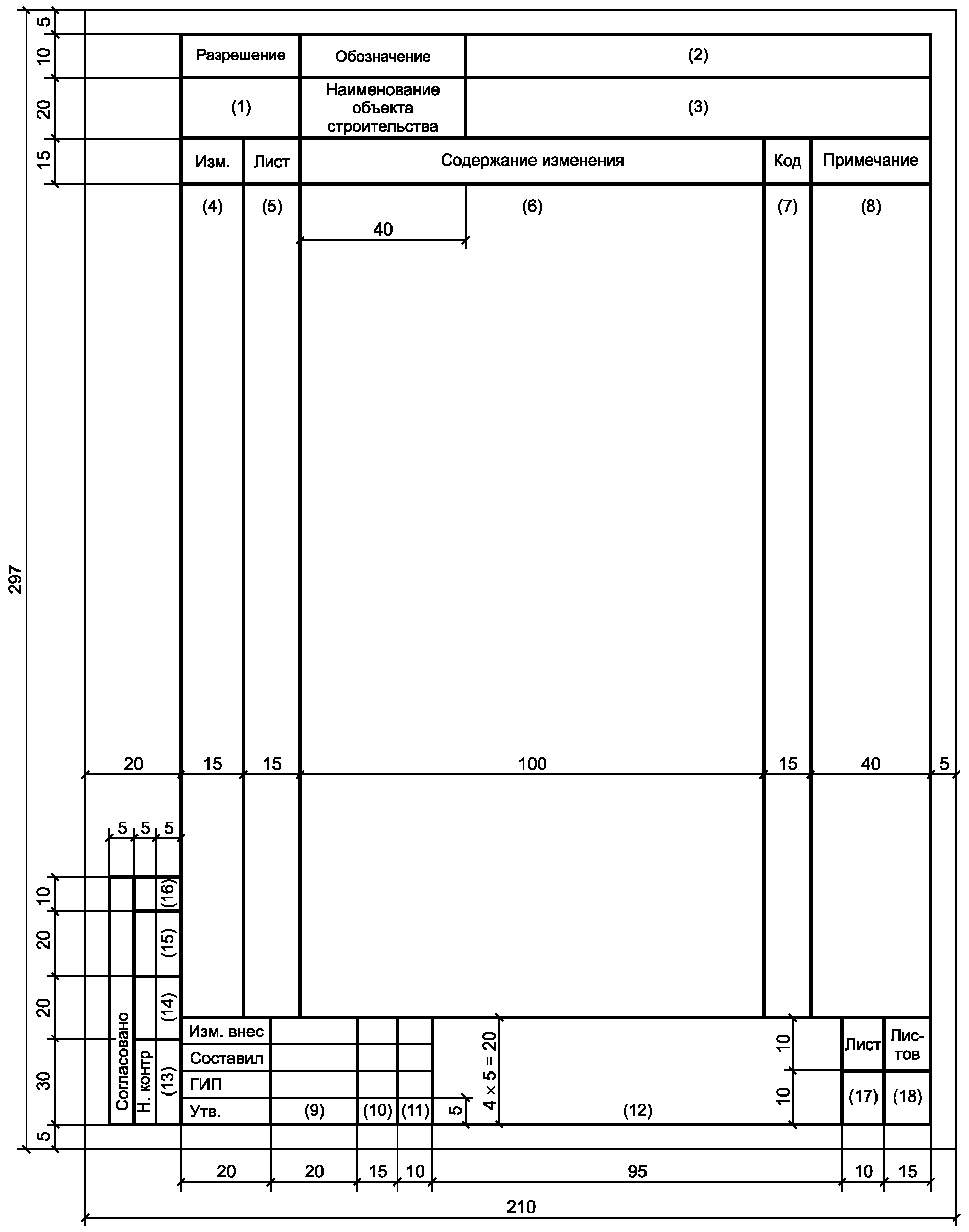 - поле 14 - для размещения таблицы регистрации изменений по