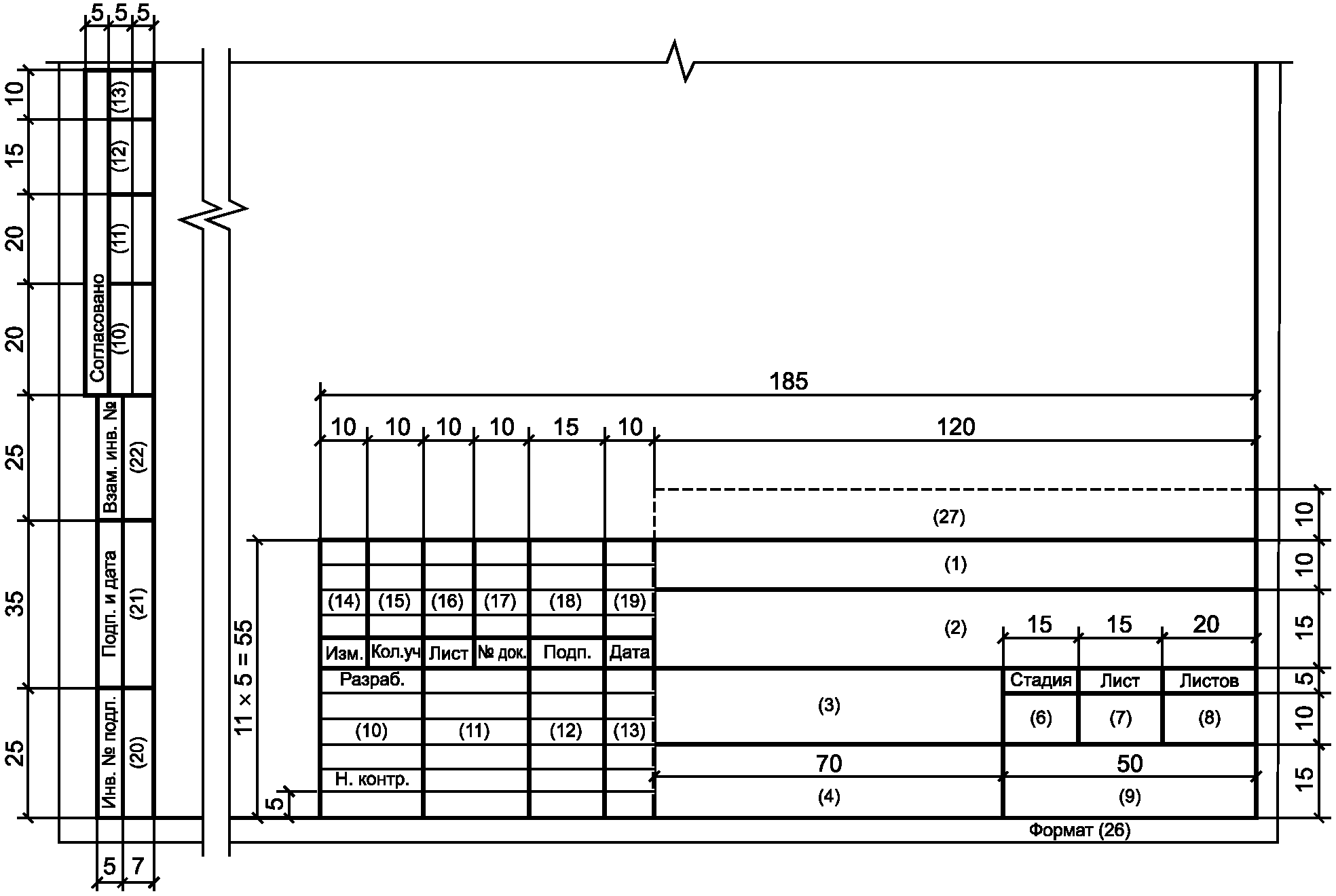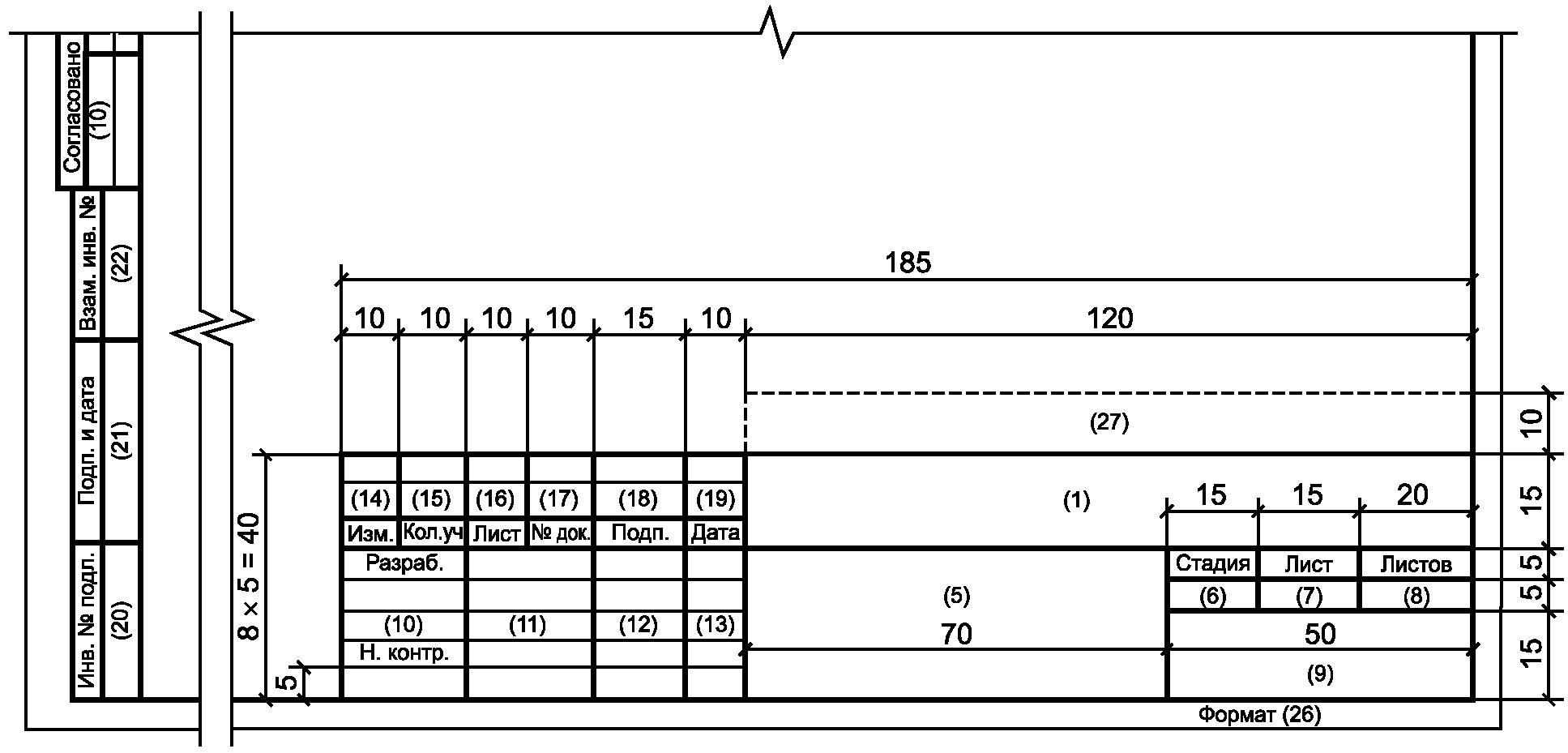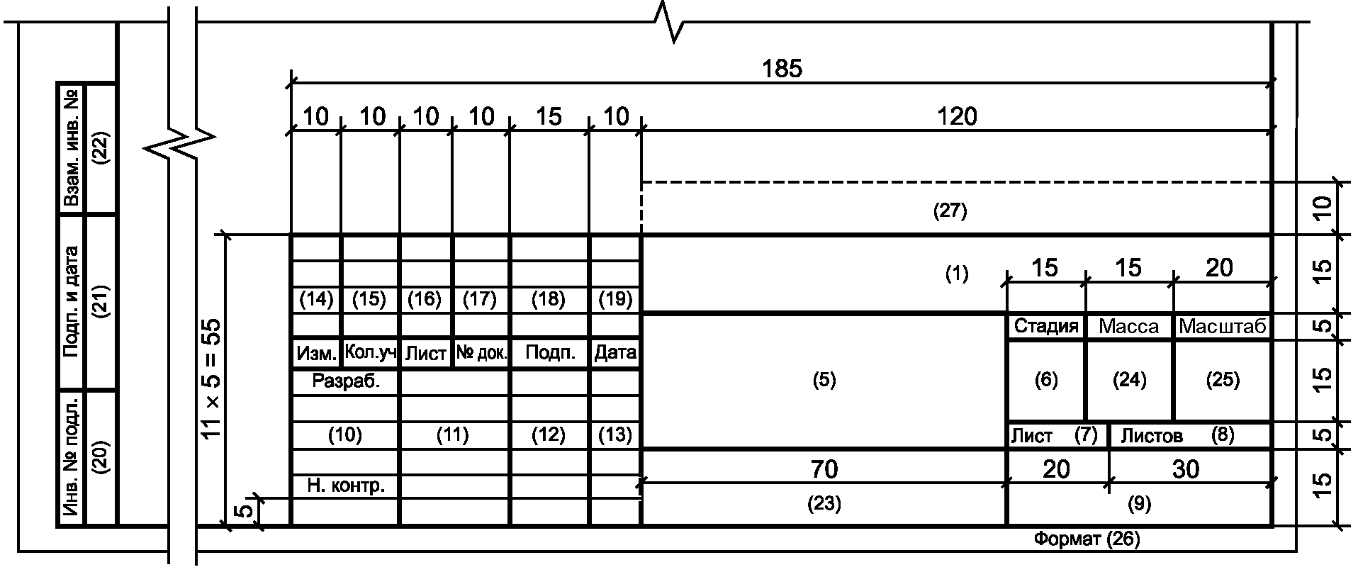 - поле 15 - для дополнительных граф основной надписи в соответствии с