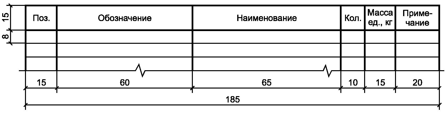 М.1. Размеры граф таблицы по