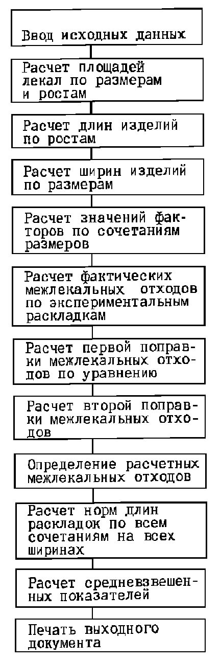 Расчетно-аналитический метод предусматривает определение индивидуальных норм расхода материалов в соответствии с установленным составом норм: площади лекал деталей изделия, межлекальных отходов в раскладке лекал, отходов по длине настила и ширине материала (за исключением шерстяных тканей).