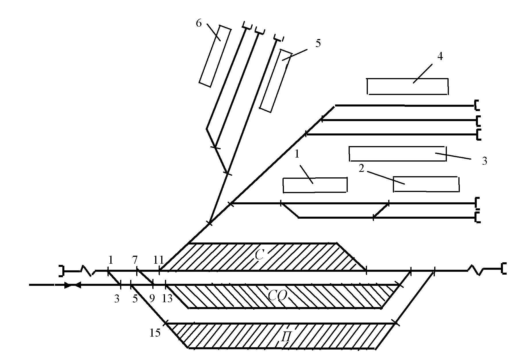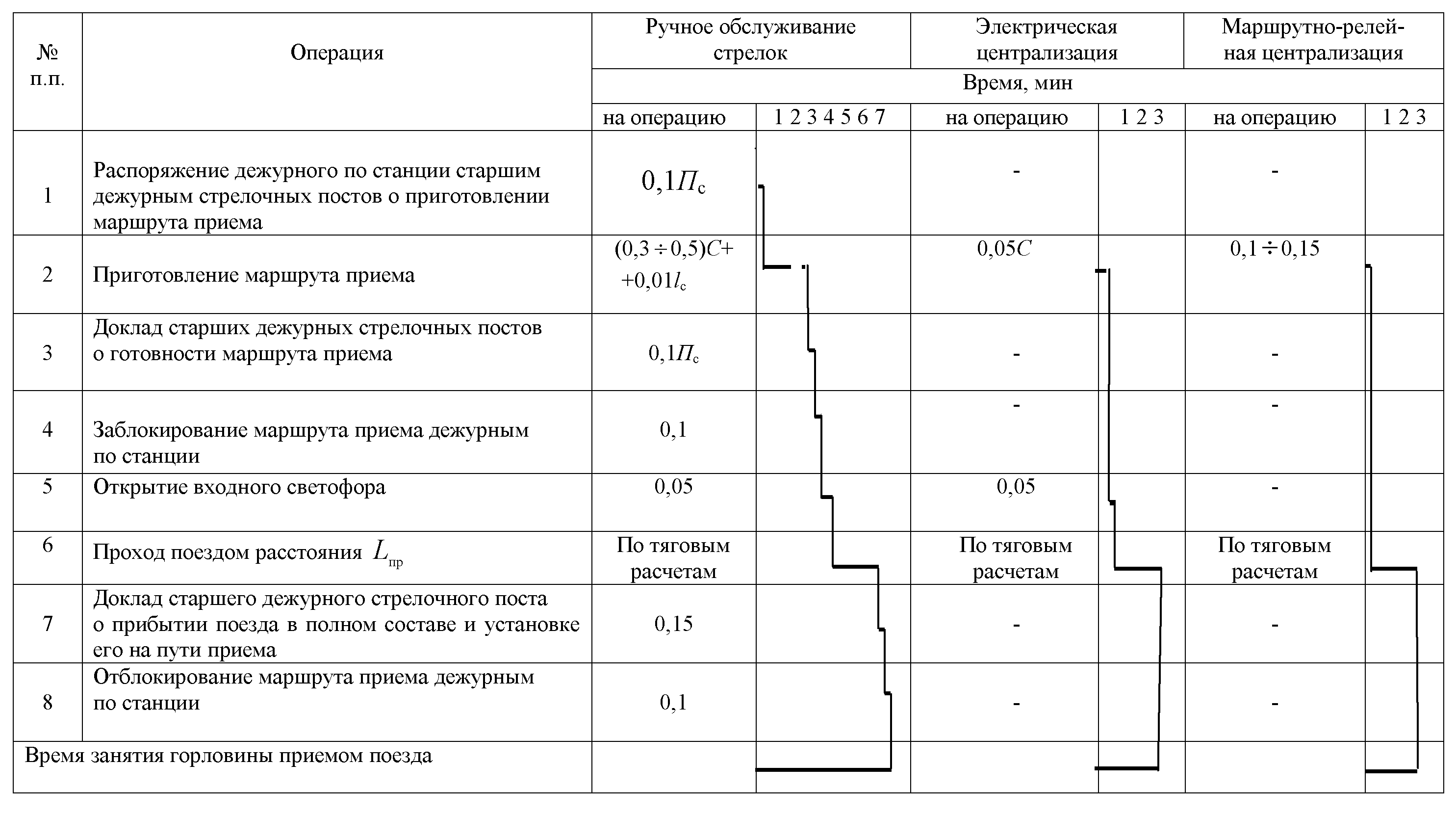 - станциям (приемо-отправочные пути и их стрелочные горловины);