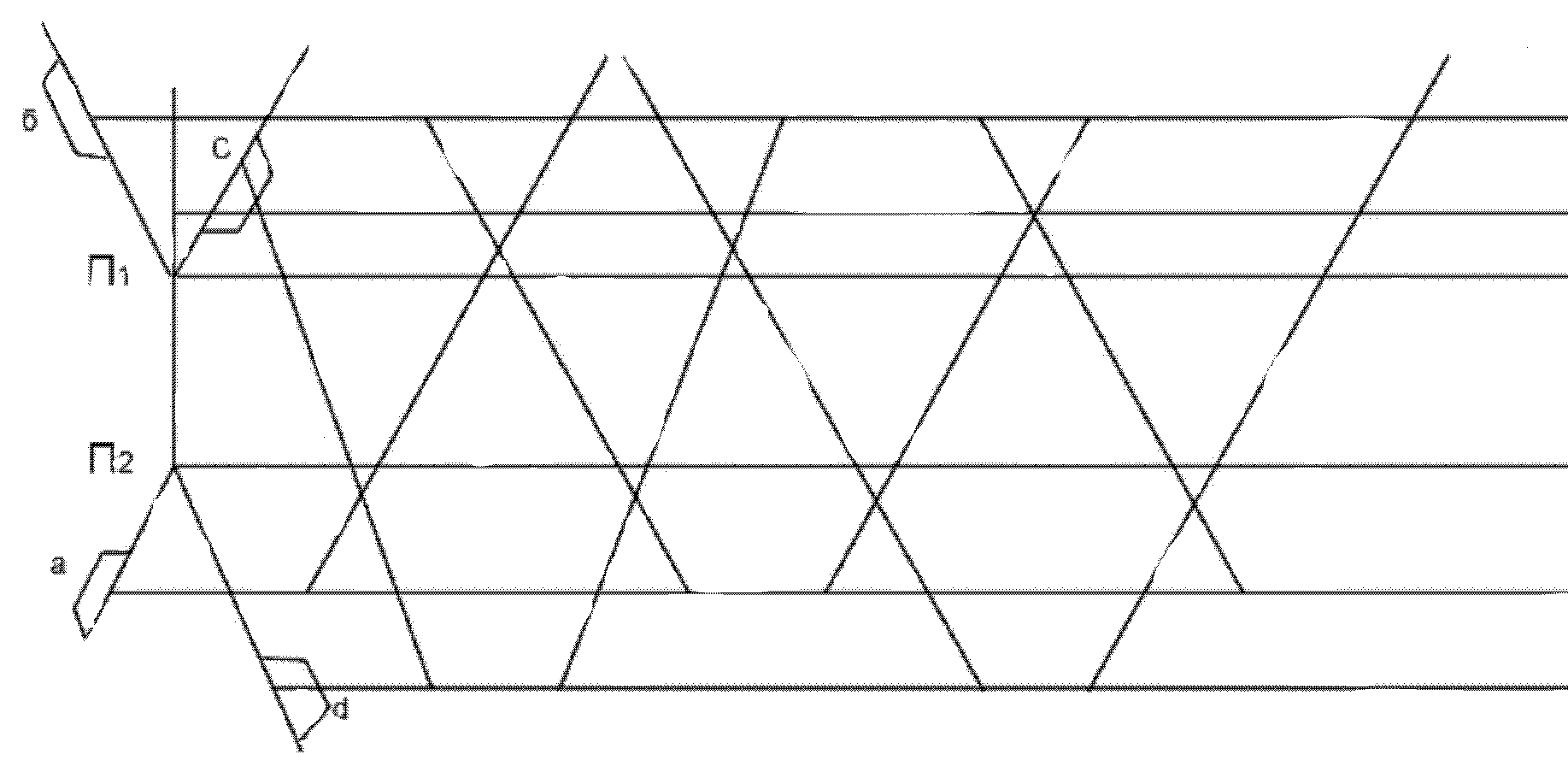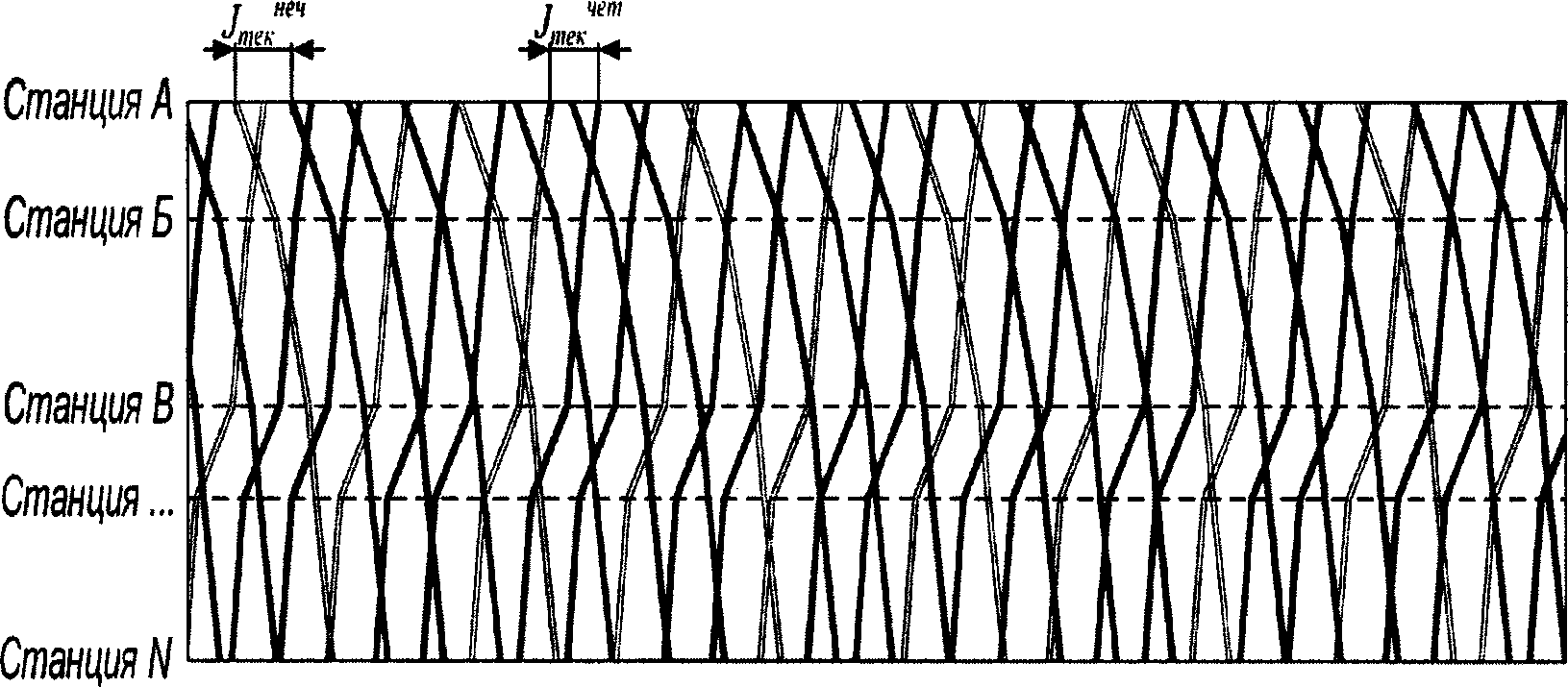 - непараллельные (не одинаковое время хода поездов по перегонам).