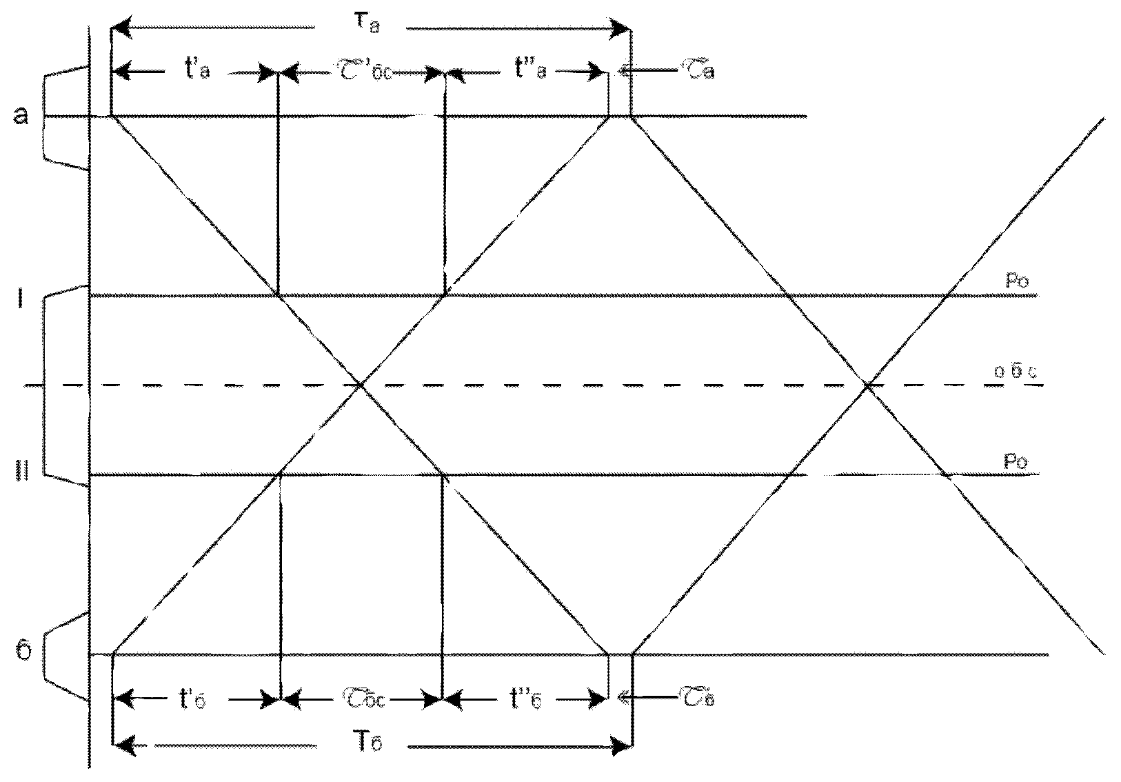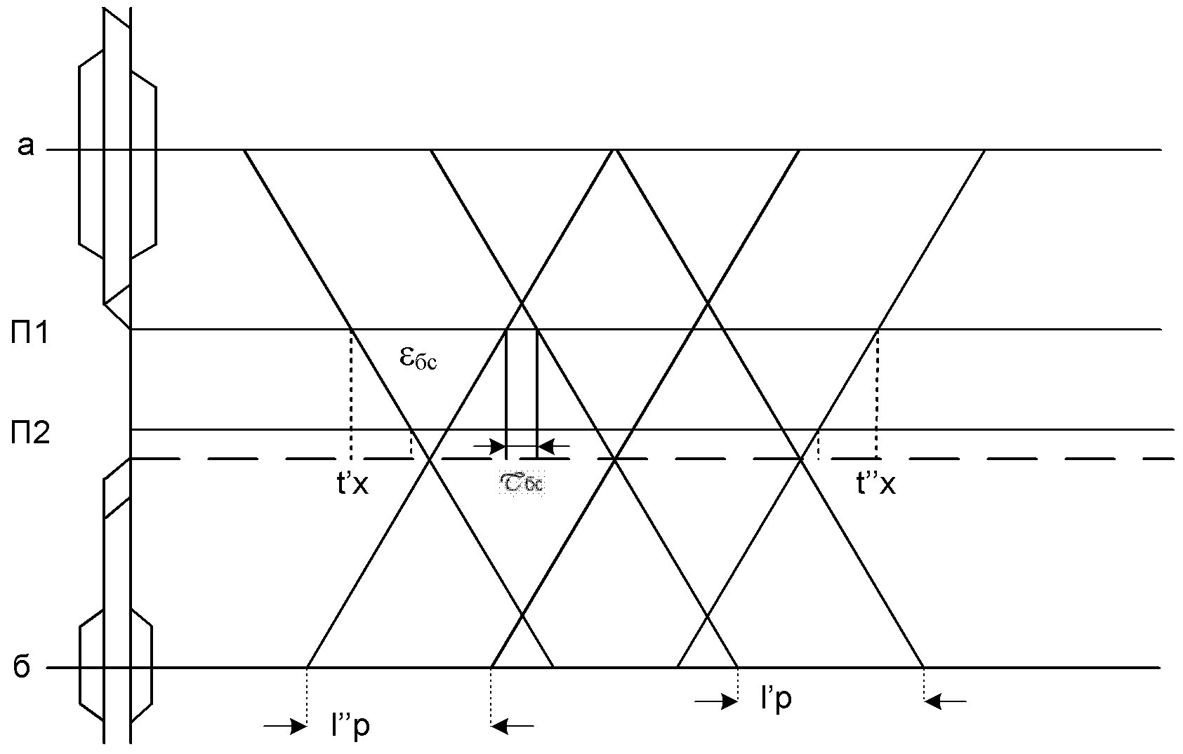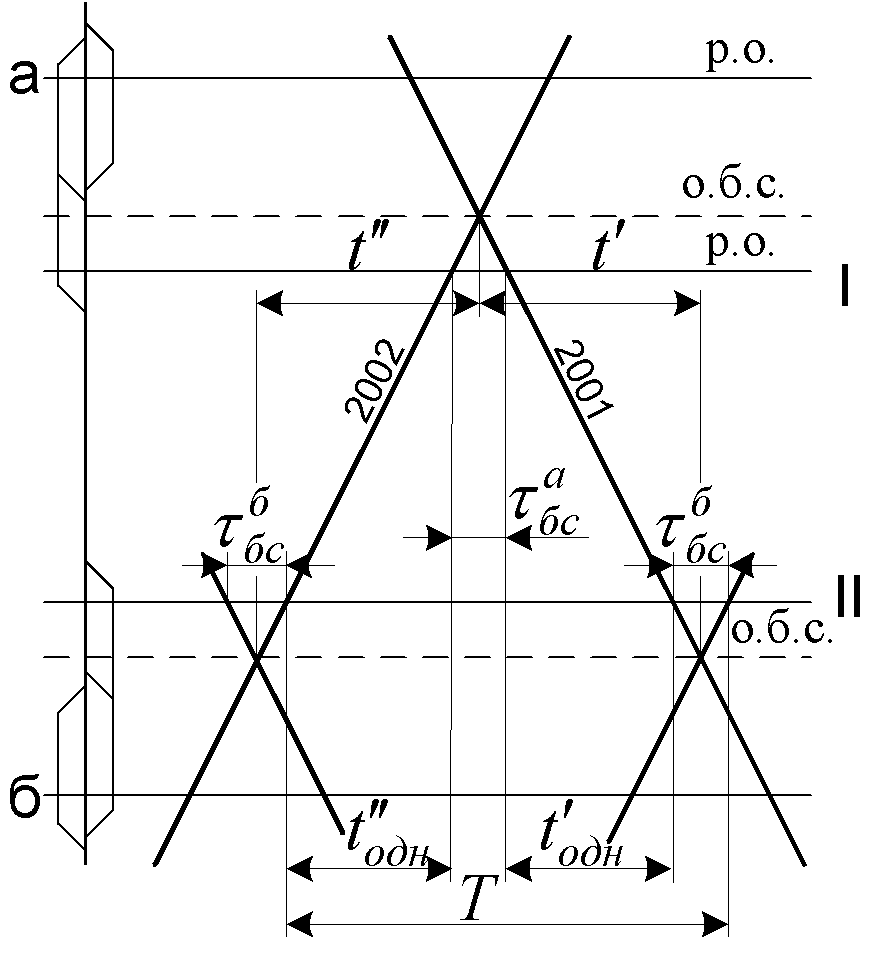 - если на участке есть перегоны, близкие по сумме времен хода четных и нечетных поездов к максимальному перегону, но с большими значениями станционных интервалов, то для них также рассчитывается период графика сообразно выбранной схеме прокладки поездов на максимальном перегоне;