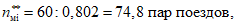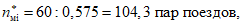 1.1.6. Наличная пропускная способность участка по перегонам определяется при параллельном графике движения поездов с округлением полученного результата до ближайшего целого значения в меньшую сторону. При этом на двухпутных линиях расчет ведется исходя из применения только пакетного графика движения поездов, а на однопутных линиях - при применении обоих типов графика в зависимости от средств сигнализации и связи по движению поездов.