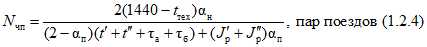 1.2.1. Наличная пропускная способность перегона определяется делением суточного бюджета времени на период графика движения поездов.