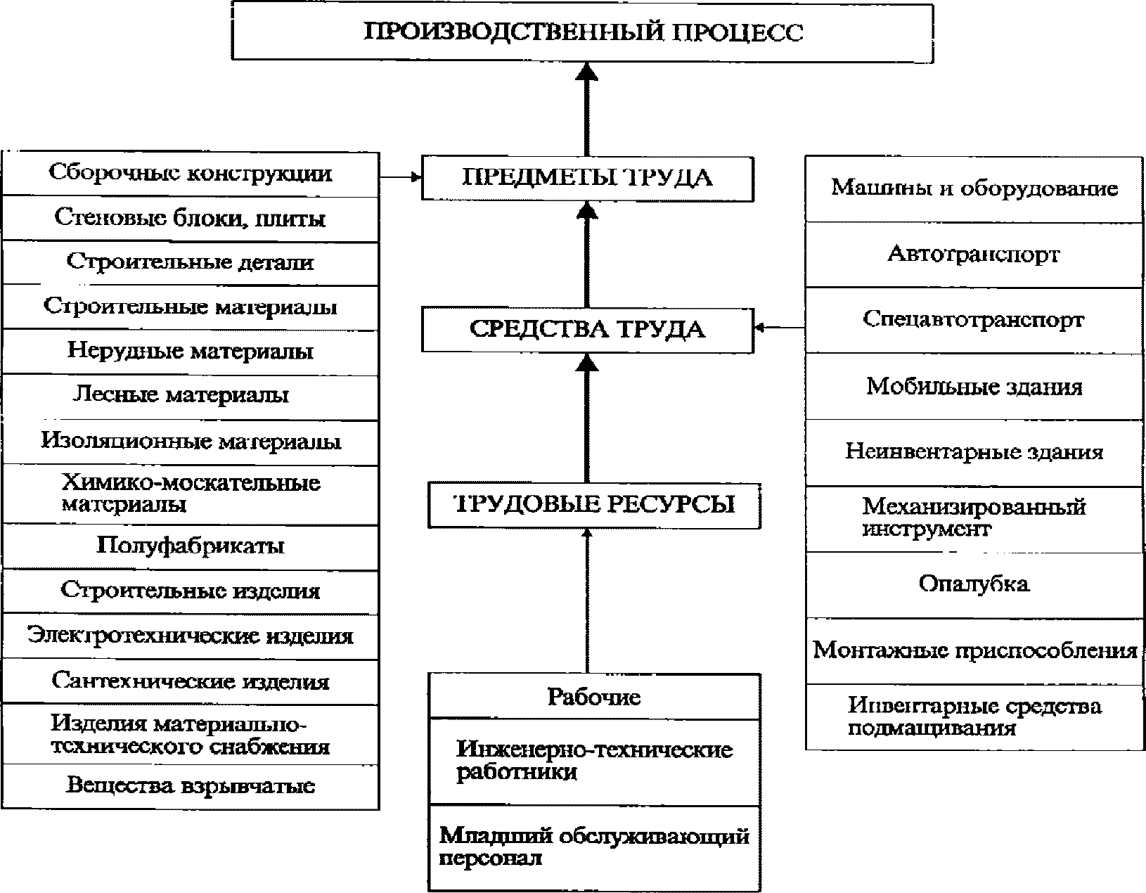 (таблица 4.1), а для подготовительного и основного периодов строительства заменяются или дополняются новыми. При этом часть ресурсов строительной организации, относящихся к категории стационарных (постоянные здания и сооружения, станочный парк и т.п.), не подлежит перебазированию в новые районы.