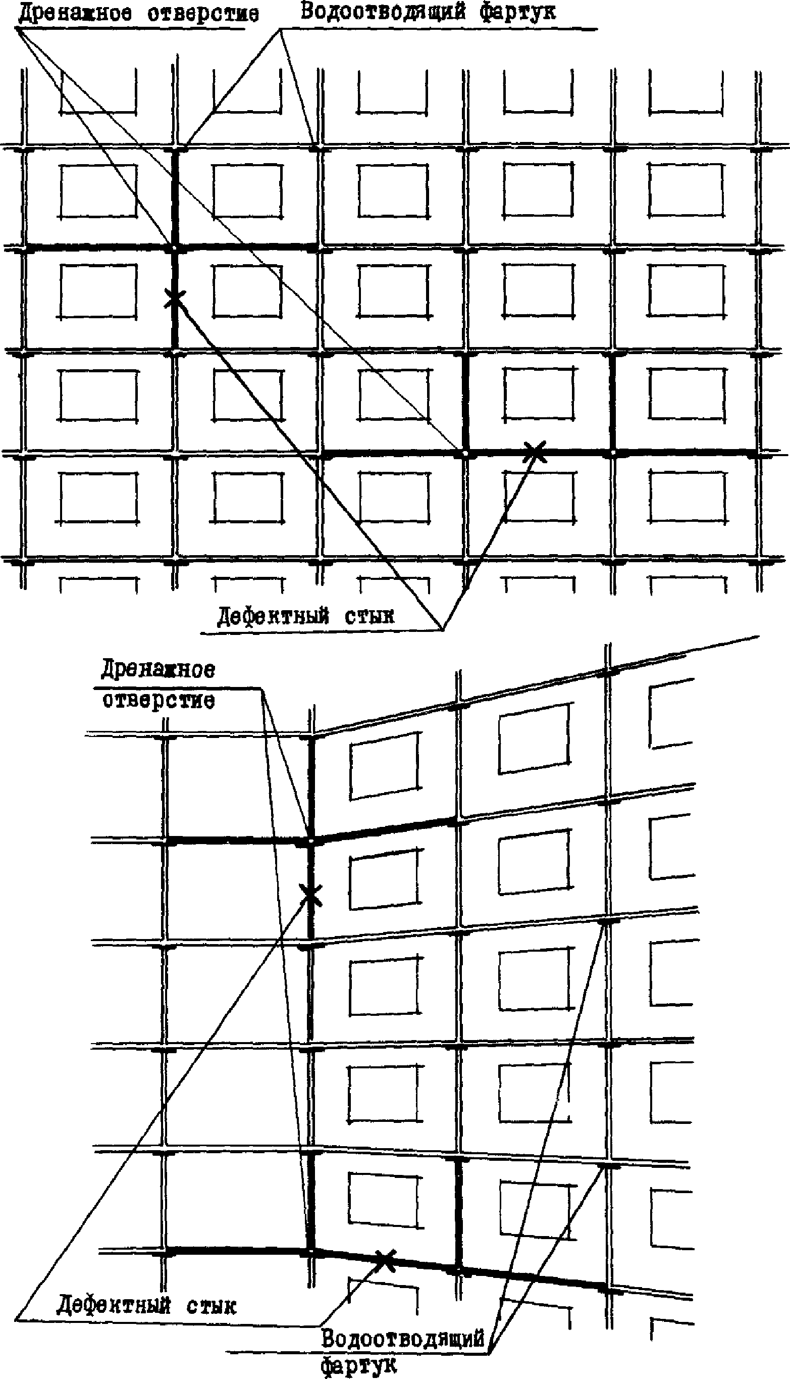- при наличии отдельных дефектов закрытых и дренированных стыков в помещениях, выходящих на данный фасад (в менее чем 25% помещений), ремонту подвергают дефектный стык, смежные с ним горизонтальные и вертикальные стыки этого и вышерасположенного этажей, а также места примыканий оконных (дверных) заполнений к граням проемов смежных панелей вышерасположенного этажа.