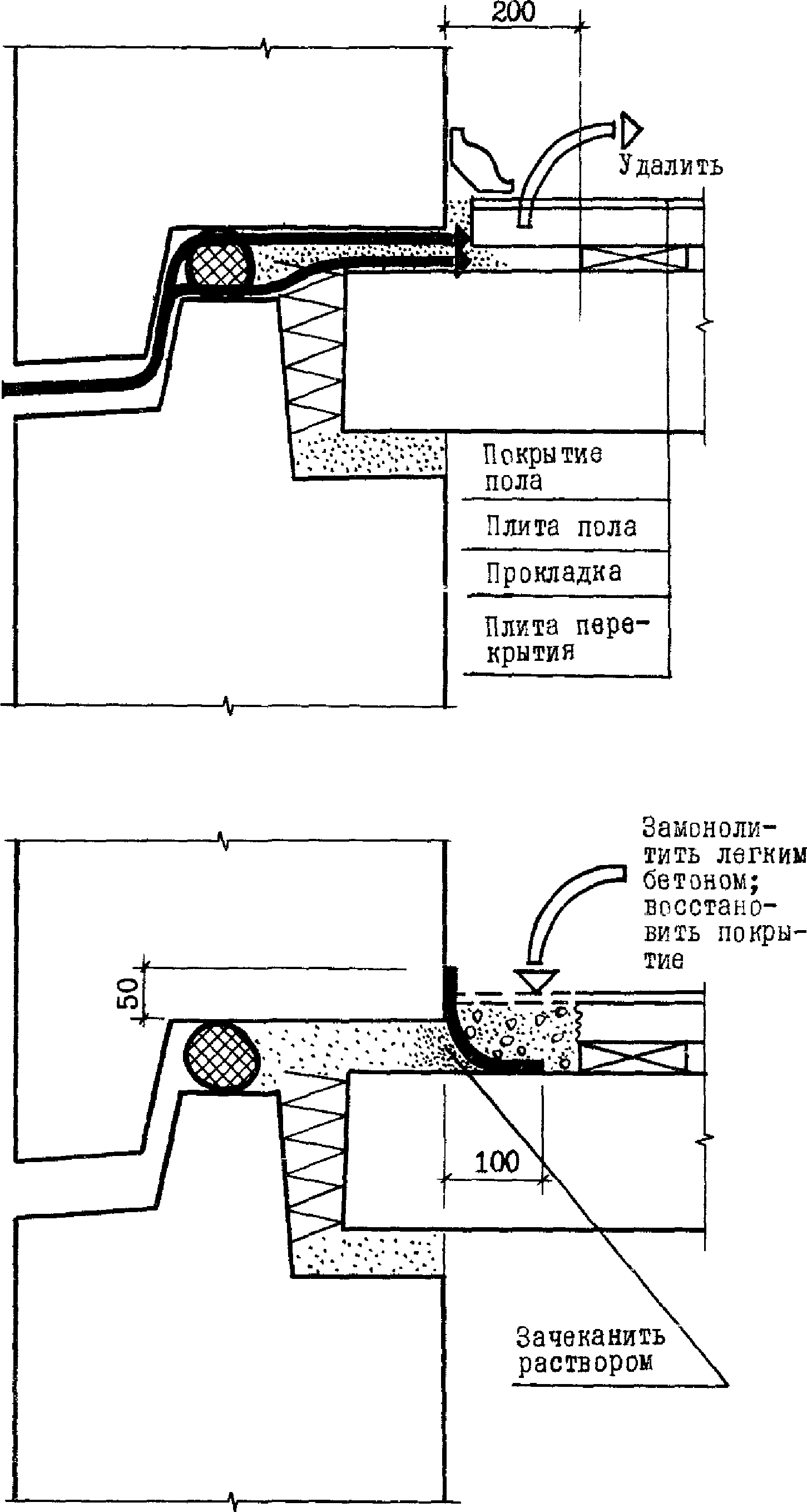 Рис. 1. Схема ремонта открытых стыков