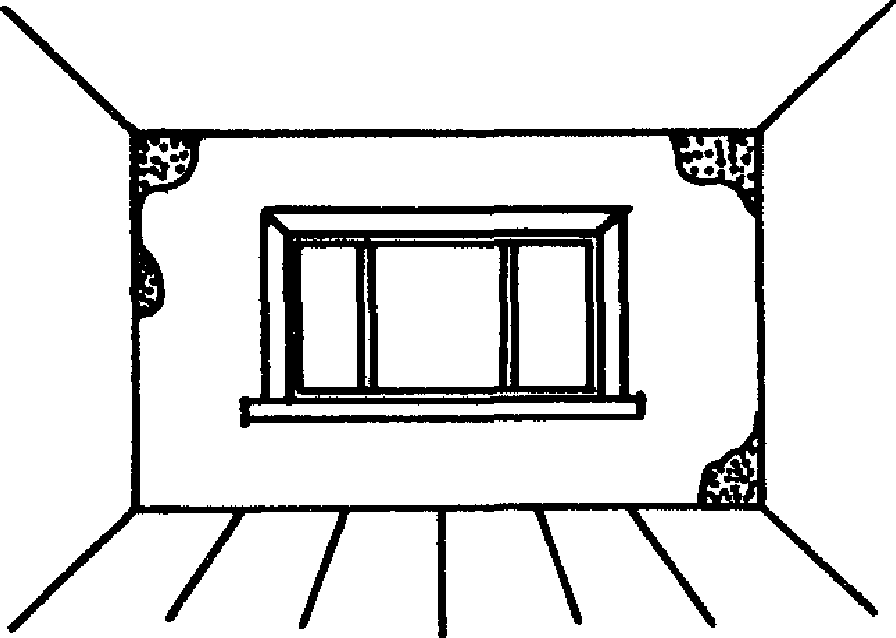 3 - отдельные пятна остроконечной формы под потолком на наружной стене;