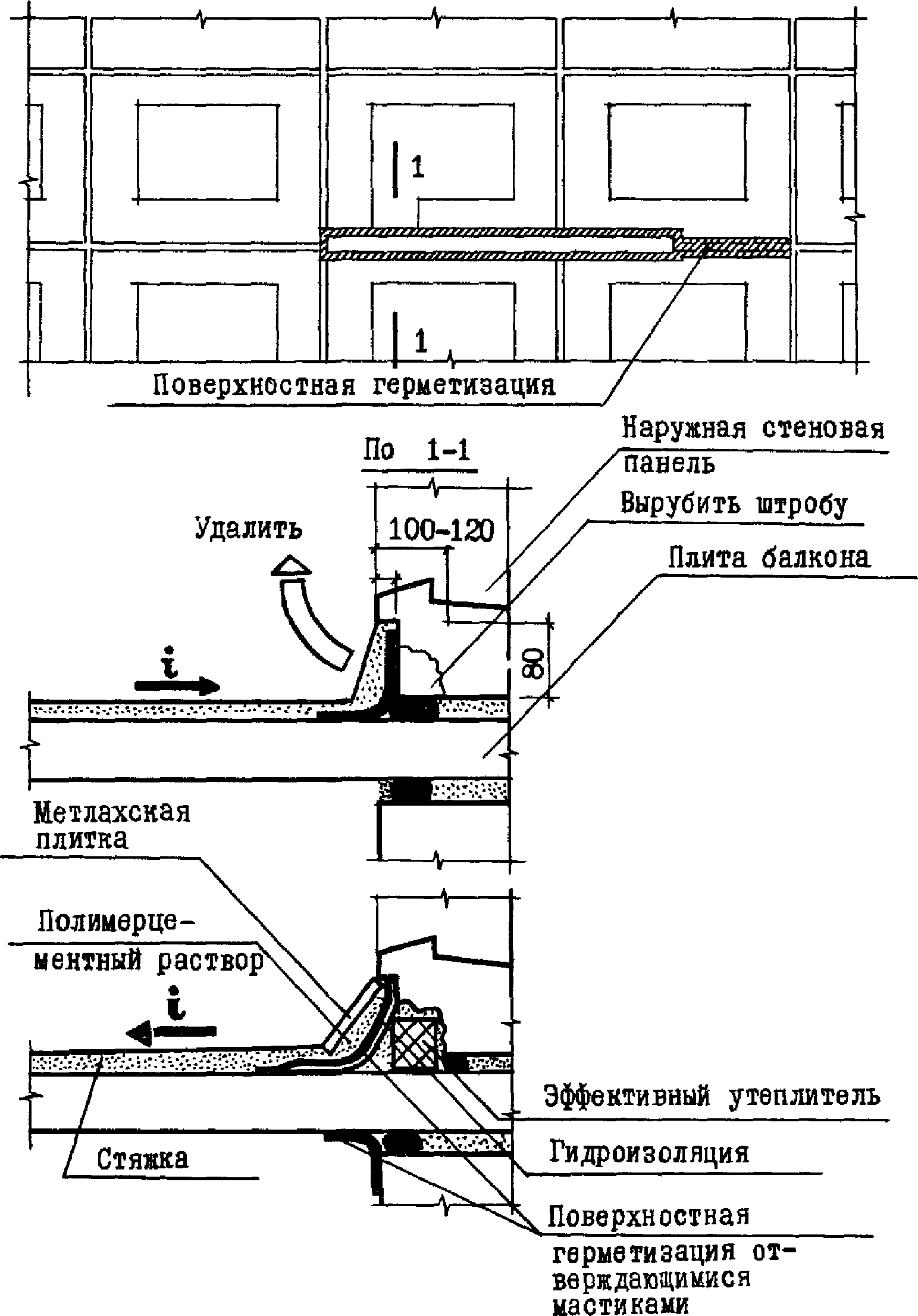 Подготовка стыков может включать следующие виды работ: расчистку, удаление теплопроводных включений, расшивку трещин в растворе защитного покрытия и устройство компенсирующего слоя, обеспечивающего лучшие условия деформирования герметика. В тех случаях, когда стыки подвергались ранее ремонту методом поверхностной герметизации, пленку старого герметика необходимо удалить.
