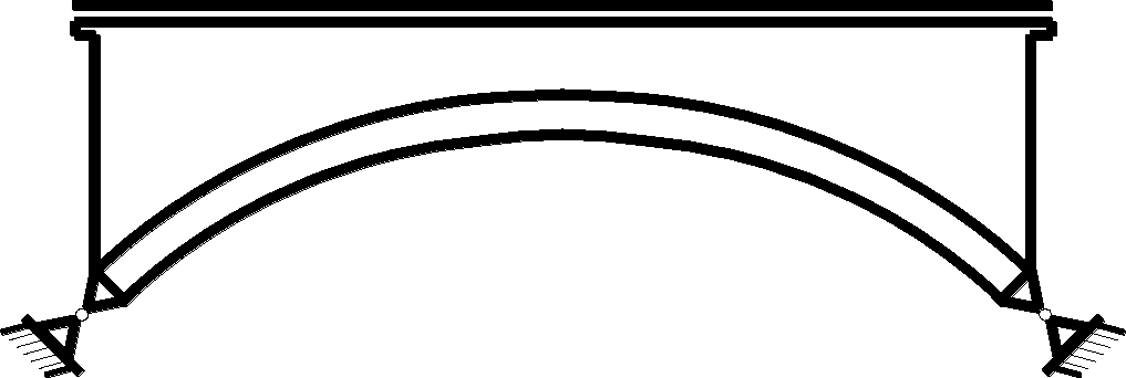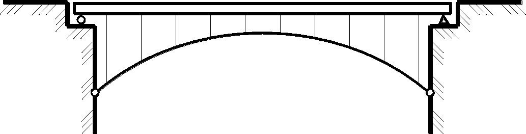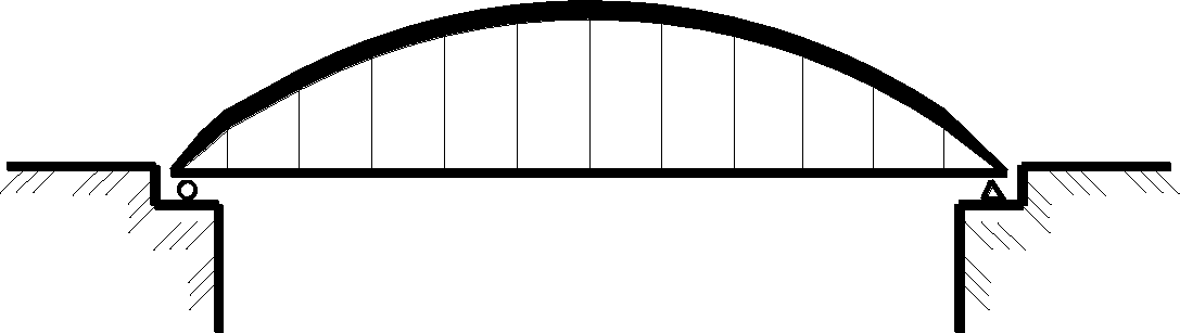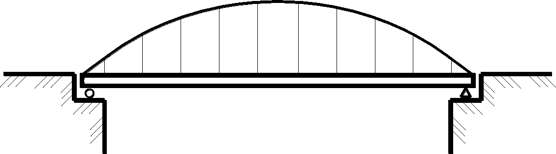Арочно-балочная внешне безраспорная (балка жесткости усиленная гибкой аркой) | ![]() |