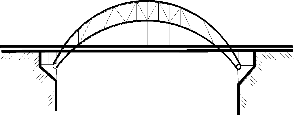 Арочно-балочная внешне распорная (балка жесткости усиления гибкой аркой) с ездой поверху | ![]() |