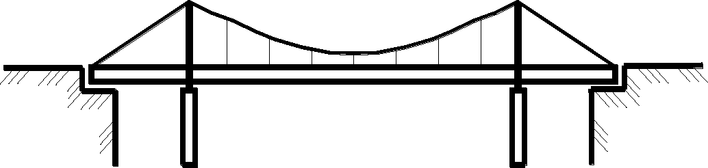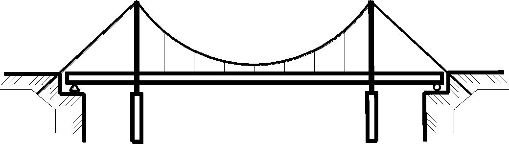 Висячая с заделкой канатов в анкерных устоях | ![]() |