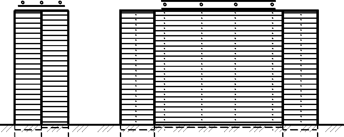 Ригель в пределах массивной части или между крайними стойками (средняя часть) | |||