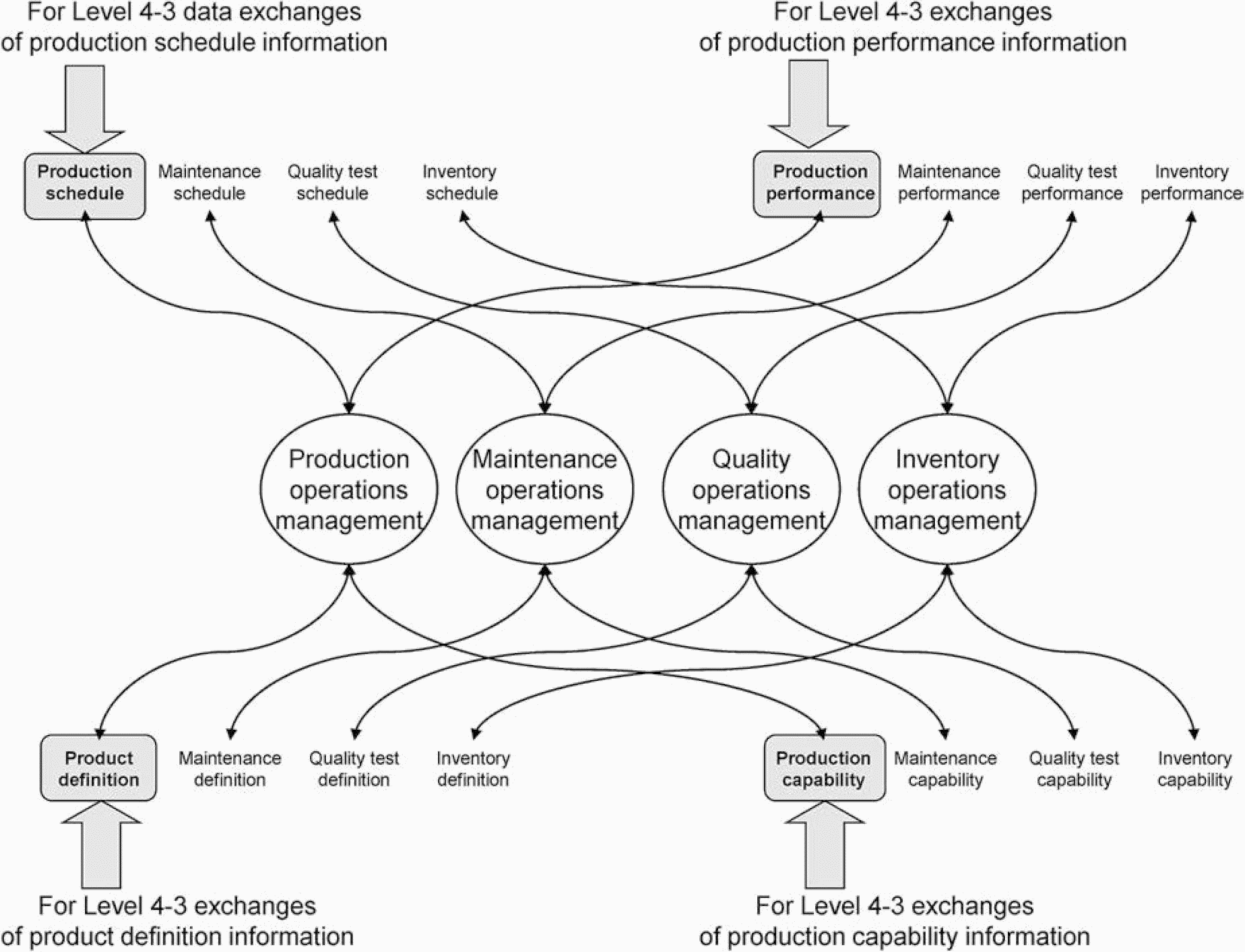 В частности, в настоящем стандарте предложены стандартная терминология и непротиворечивое множество принципов и моделей для интегрирования систем управления с производственными системами, что должно улучшить возможности взаимодействия между всеми участниками процесса управления. Такая интеграция должна: