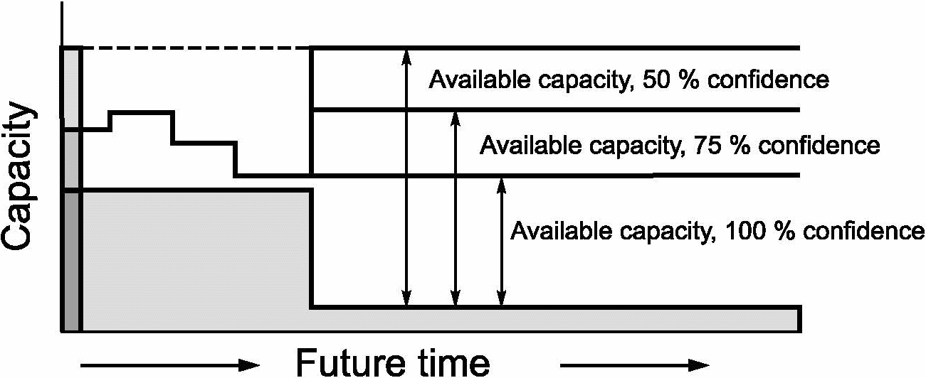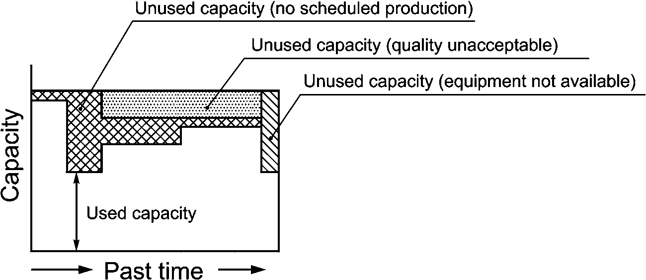 3.1.3 доступная мощность (available capacity): Производственная мощность, которая могла бы быть использована, но пока не доступна для выпуска текущей или будущей продукции