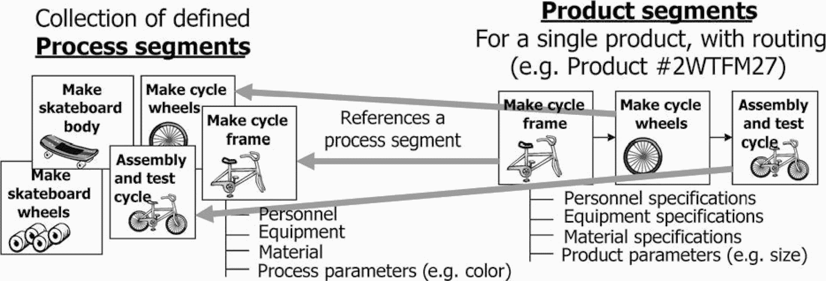 Множество специалистов пытались использовать иерархию оборудования, описанную в МЭК 62264 (и МЭК 61512), для определения физического аспекта оборудования, и это приводило к возникновению большой путаницы. Например, насос согласно МЭК 61512 можно рассматривать как модуль управления, а согласно МЭК 62264 - как часть блока, однако если реальный насос был отключен от другого насоса, то согласно МЭК 62264 иерархия оборудования не изменится (если насос будет выполнять ту же роль), но серийный номер, документация по техническому обслуживанию и т.п. останутся связанными с прежним насосом.