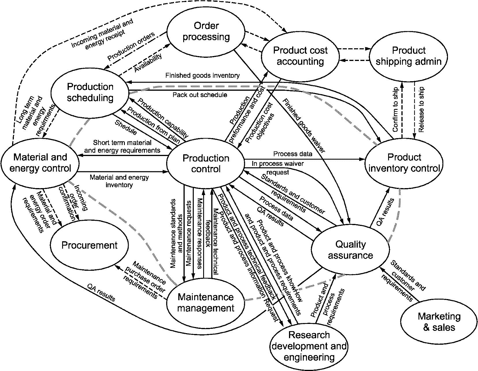 Выше рассмотрен один из методов описания этапов, на которых формируются информационные потоки между административными подразделениями и производственными участками на предприятиях (при наличии доступности к товарно-материальным запасам).