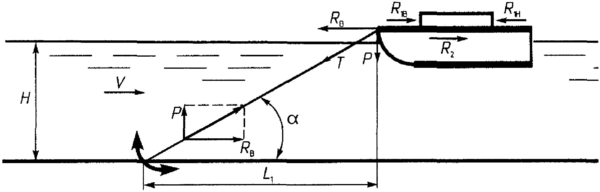 3.2.1. Должны быть проверены прочность выводного звена наплавного моста с учетом горизонтального изгиба от волны, течения, ветра и прочность наплавного моста при обрыве одного из раскреплений.