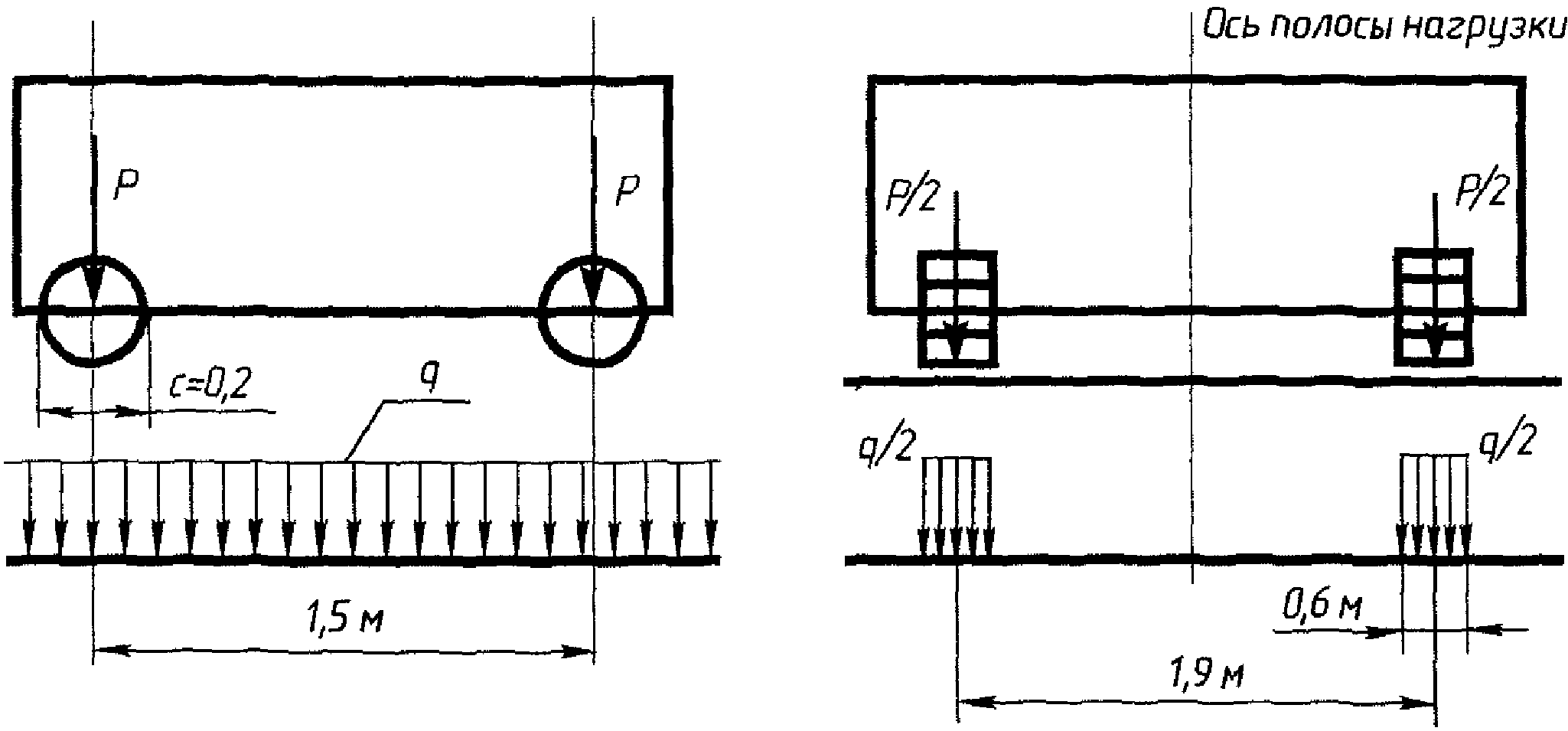 q - погонное давление эквивалентной нагрузки от подвижной сосредоточенной нагрузки P, кН/м: