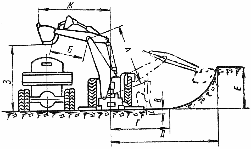 б) в случаях, когда рабочие отметки насыпей не превышают 3 м и ширина бермы допускает размещение крана и при глубине выемок не более 2,5 м;