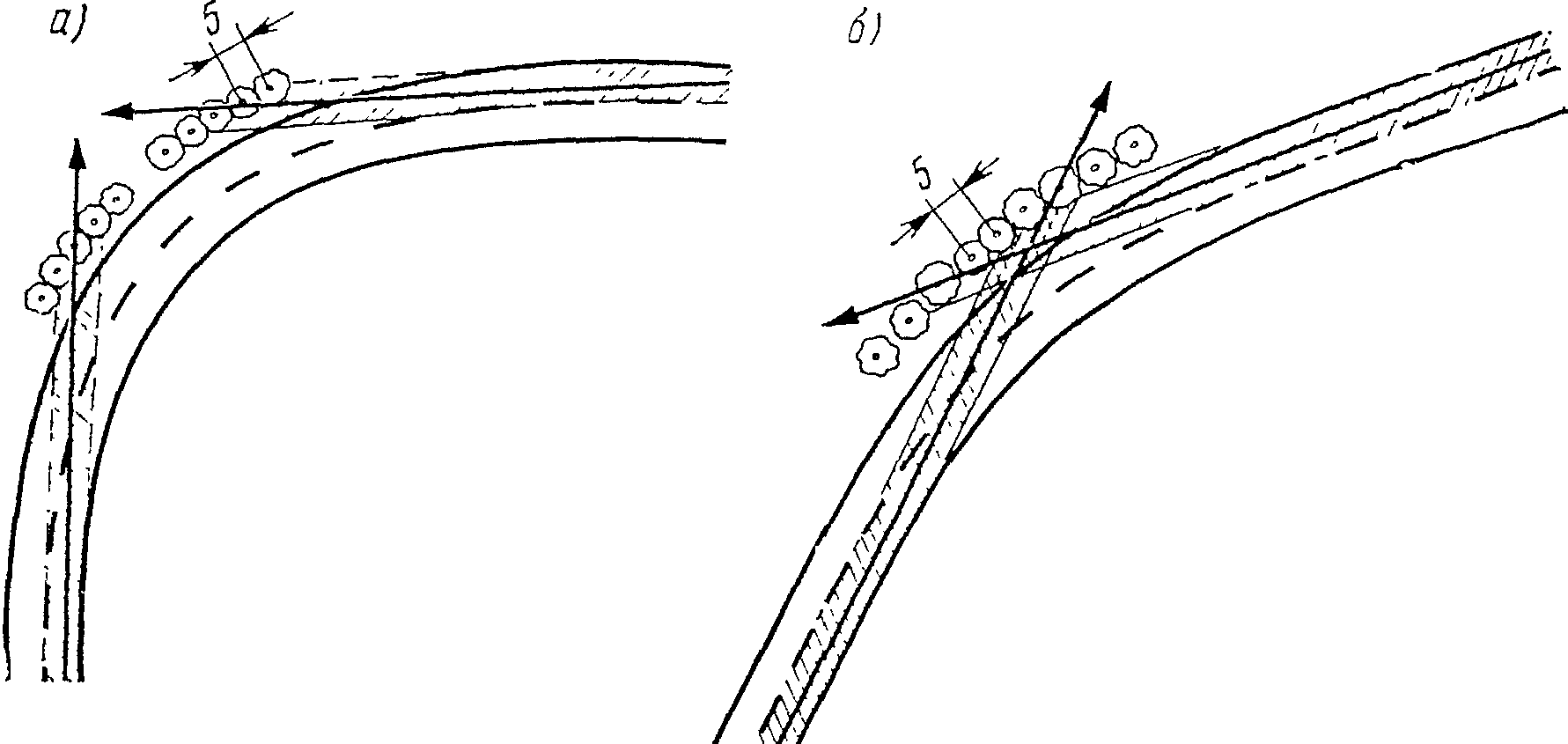 3.3. Для ликвидации или сглаживания монотонности просеки разруб рекомендуется выполнять волнистым в плане, с созданием системы выступов, ритм которых должен меняться при движении потока автомашин каждые 5 мин (рис. 56).
