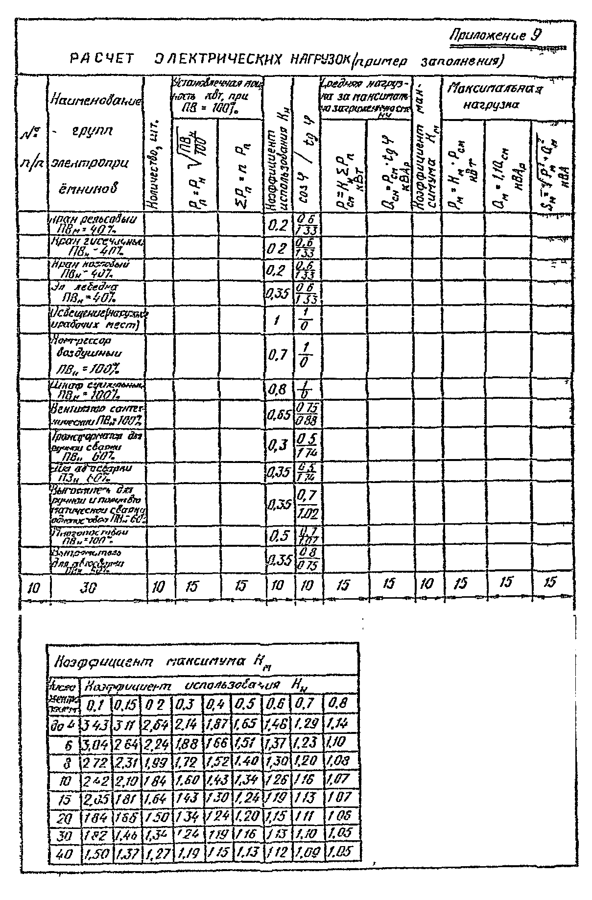 Примечания. 1. Характеристики электроприемников указывают по каталожным данным.