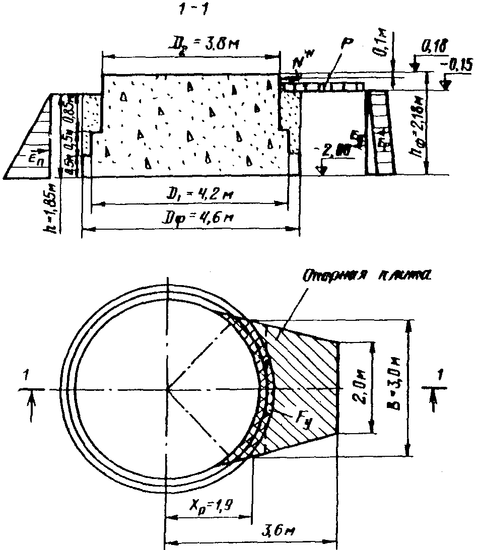 2.5. Возможность подъема вертикального аппарата методом поворота вокруг шарнира устанавливают, проверяя устойчивость фундамента при приложении максимального горизонтального усилия, возникающего в процессе подъема